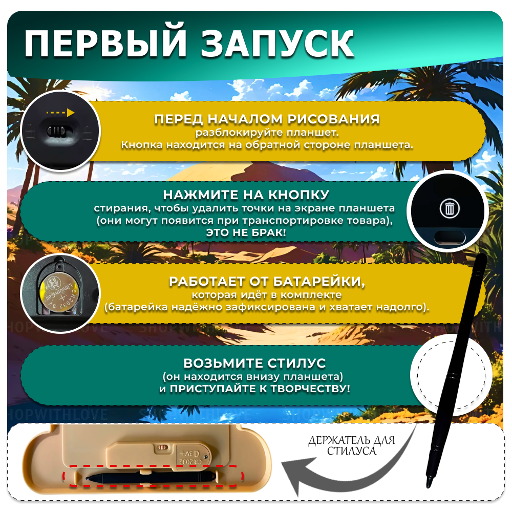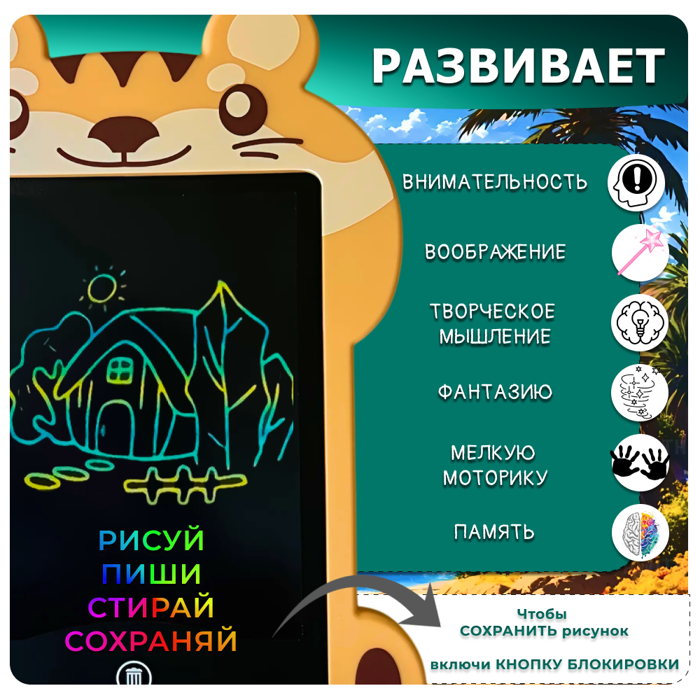 Детский графический планшет для рисования "Тигрёнок", LCD экран, со стилусом интересное: