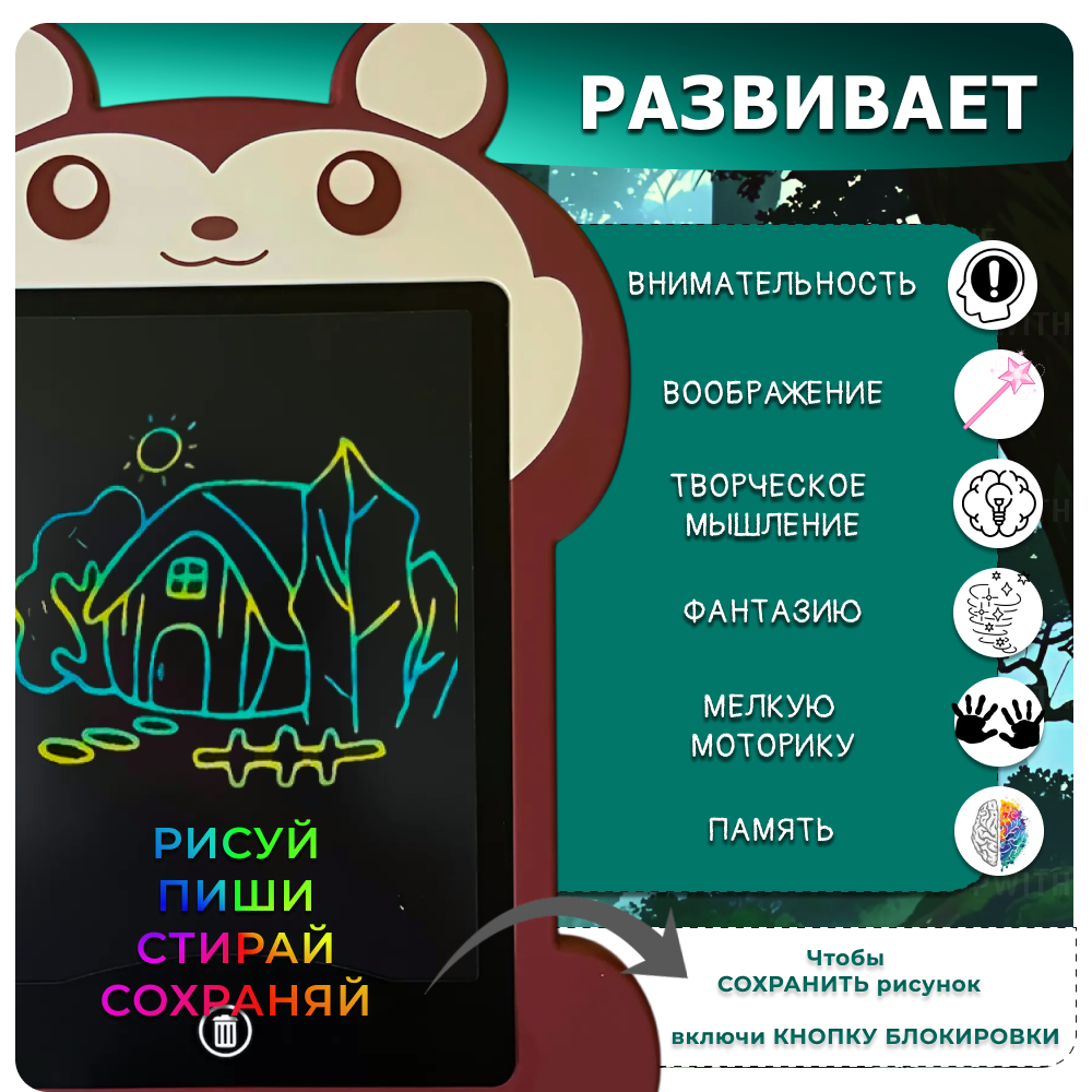 Детский графический планшет для рисования "Мишка", LCD экран, со стилусом интересное: