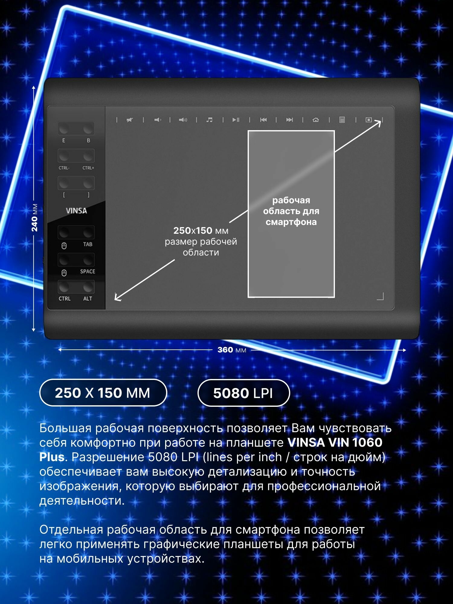 Графический планшет, VINSA VIN 1060 Plus, Qiimos. интересное: