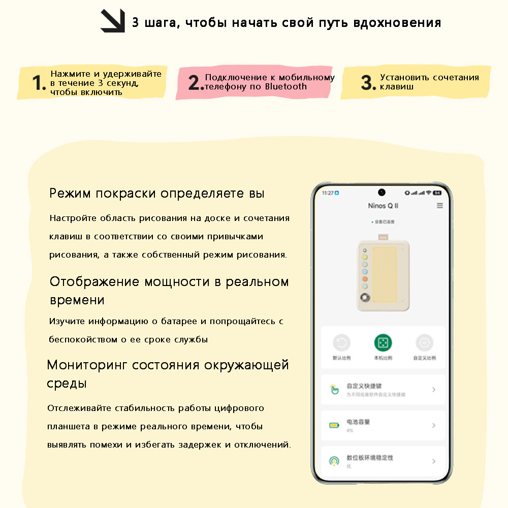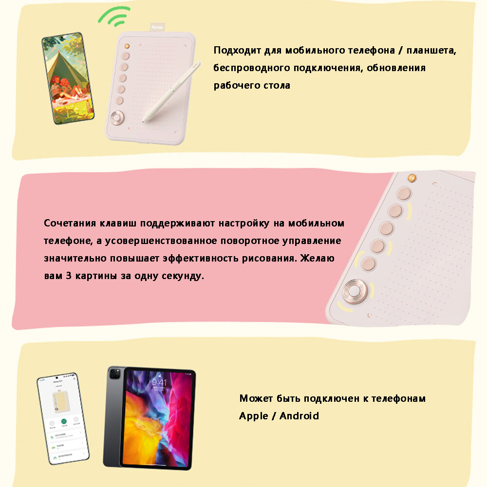 Беспроводной цифровой планшет Parblo Ninos Q 2-го поколения, расписанный вручную планшет/Bluetooth, розовый интересное: