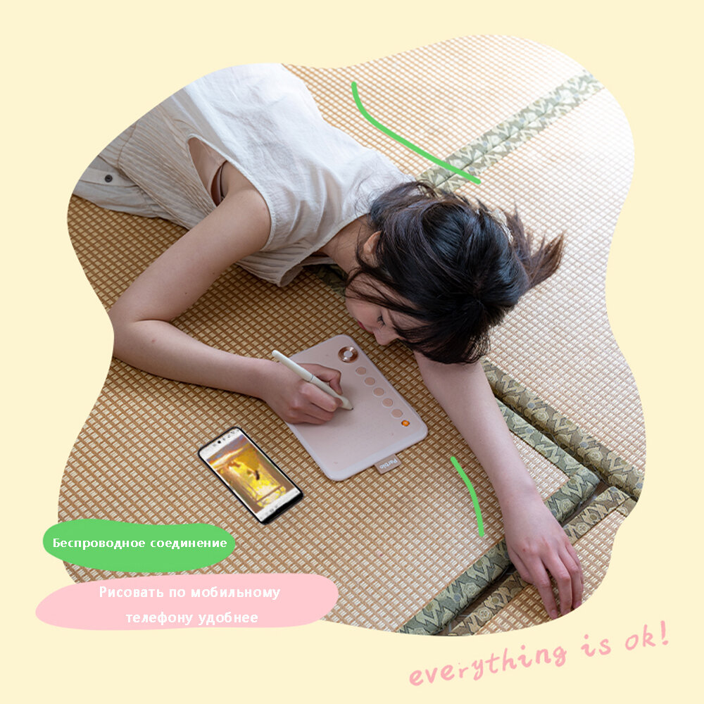 Купить Parblo Ninos Q 2-го поколения беспроводной цифровой планшет для рисования/бесплатный подарок белый