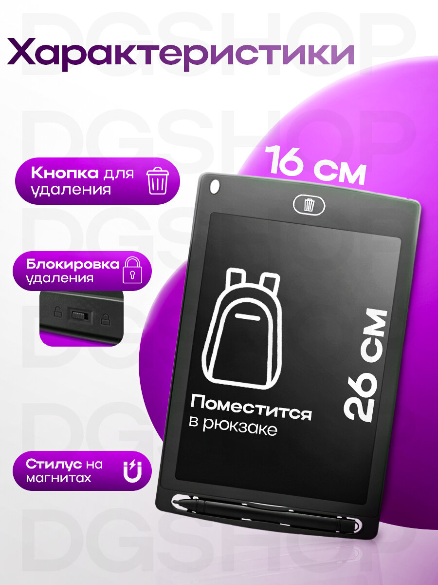 LCD графический планшет для заметок Maxvi MGT-01, черный, 8.5", монохромный