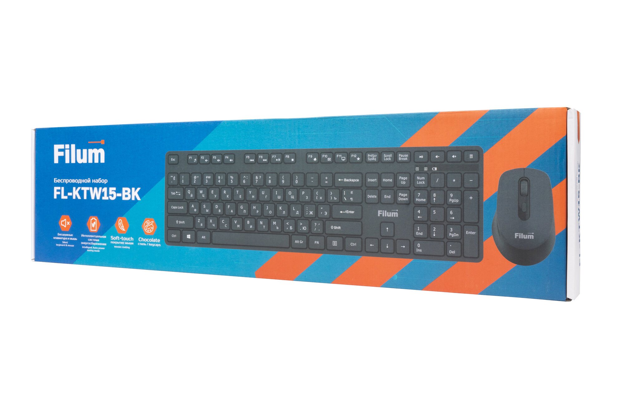 Купить Комплект клавиатура и мышь Filum Wireless FL-KTW15-BK, беспроводная, русская раскладка, мембранная, черный