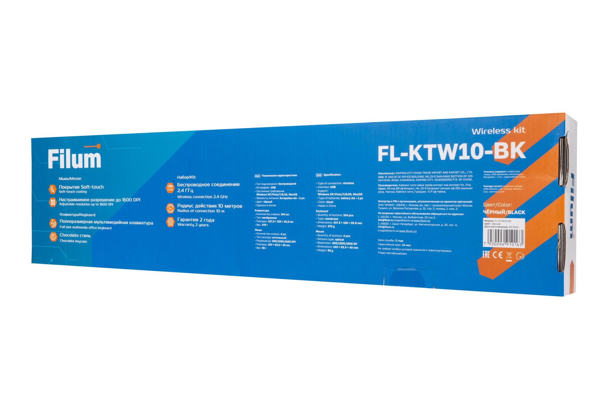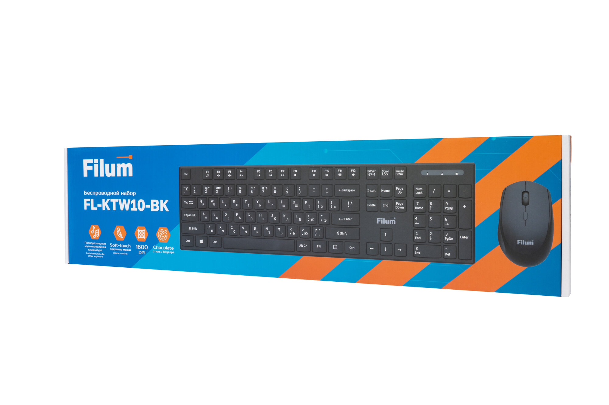 Купить Комплект клавиатура и мышь Filum Wireless FL-KTW10-BK, беспроводная, русская раскладка, мембранная, чёрный