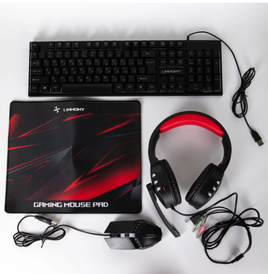 Игровой набор наушники, клавиатура, мышь, коврик интересное: