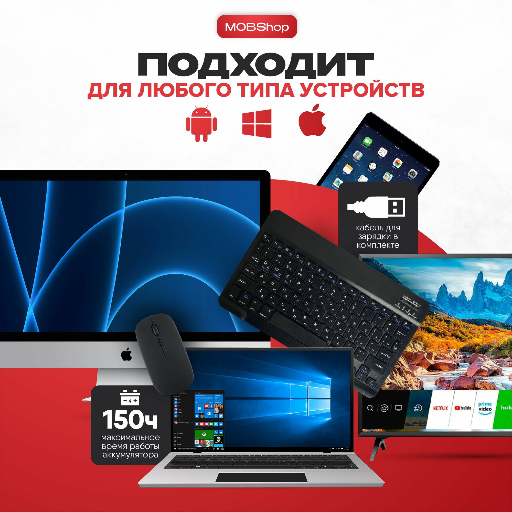 Клавиатура с подсветкой + мышь, Bluetooth, супертонкая для смартфона, планшета, беспроводная с зарядкой интересное: