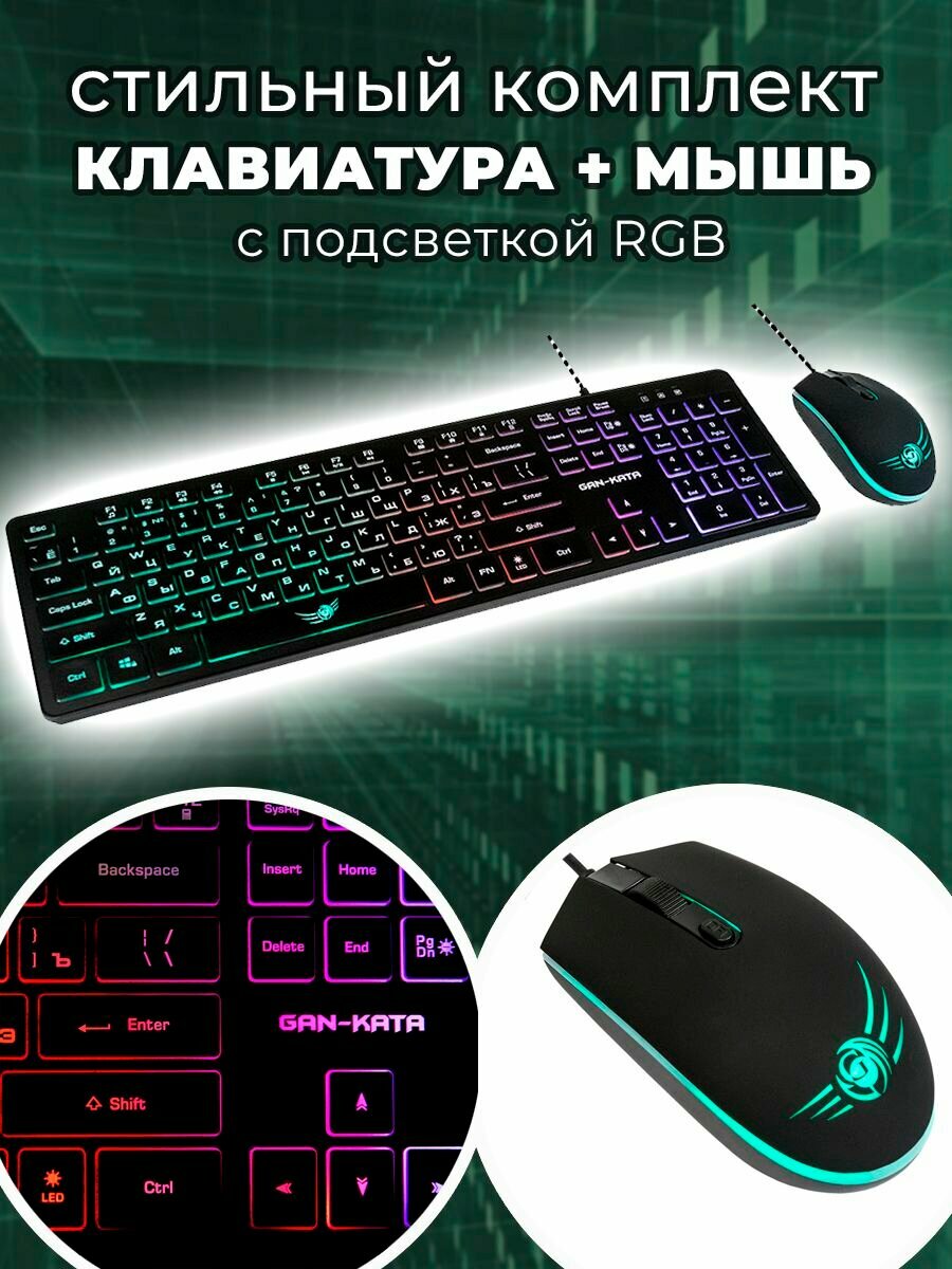 Комплект клавиатура и мышь игровые, цвет: черный, с подсветкой интересное: