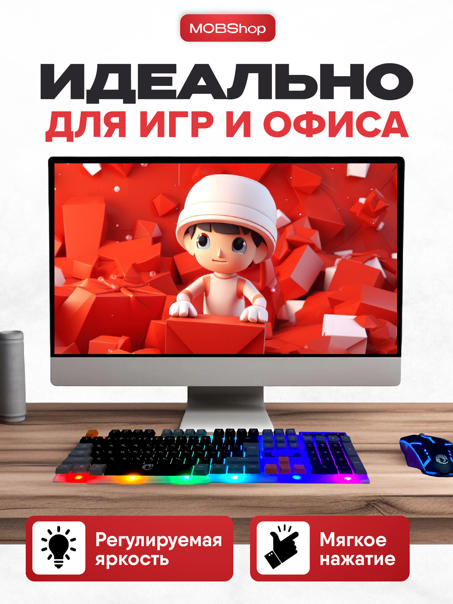 Игровой комплект клавиатура и мышь, с влагозащитой, с RGB-подсветкой, для ПК, USB интересное: