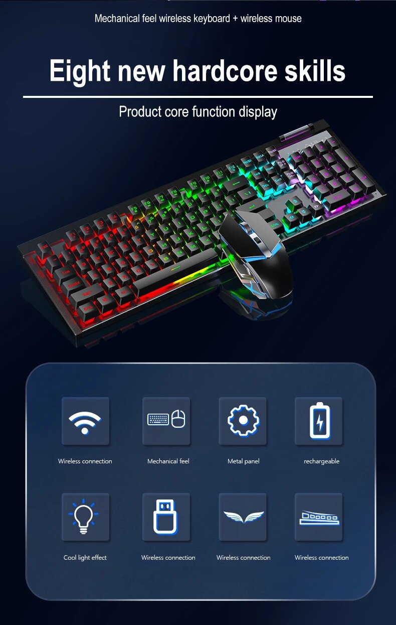 Купить Беспроводная клавиатура и мышь FALAIXILUO T610, Silver white blue