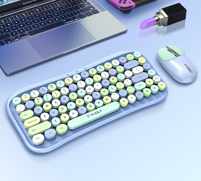 Комплект беспроводной клавиатуры и мыши T-wolf TF660, молочный чай, фотоэлектрический, 1600 dpi