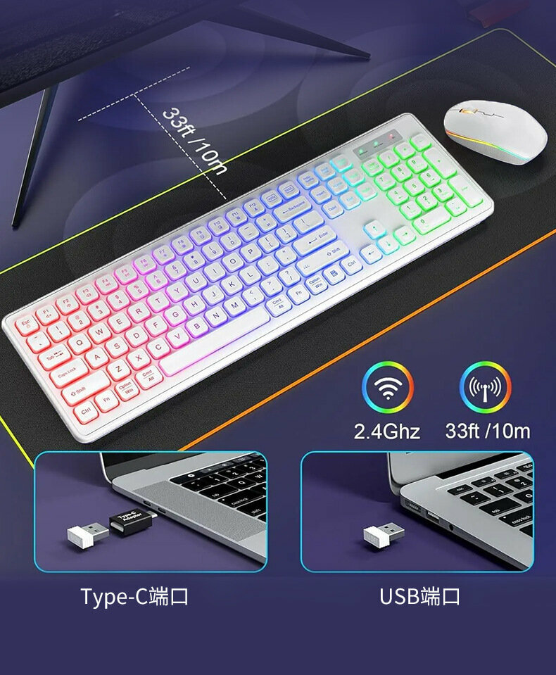 Клавиатура и мышь JOMAA keyboardset134, беспроводная, RGB-подсветка, эргономичная