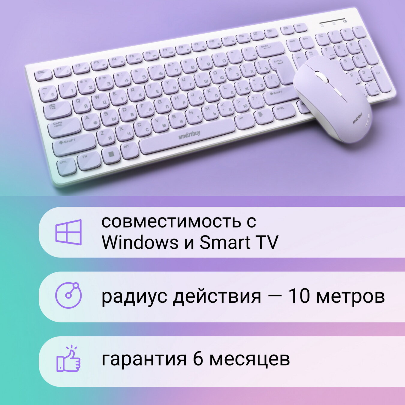Купить Комплект клавиатура и мышь мультимедийный бело-сиреневый
