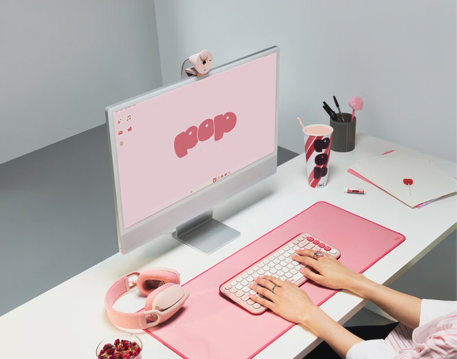 Комплект: клавиатура+мышь Logitech POP ICON KEYS Combo белый, розовый, английский интересное: