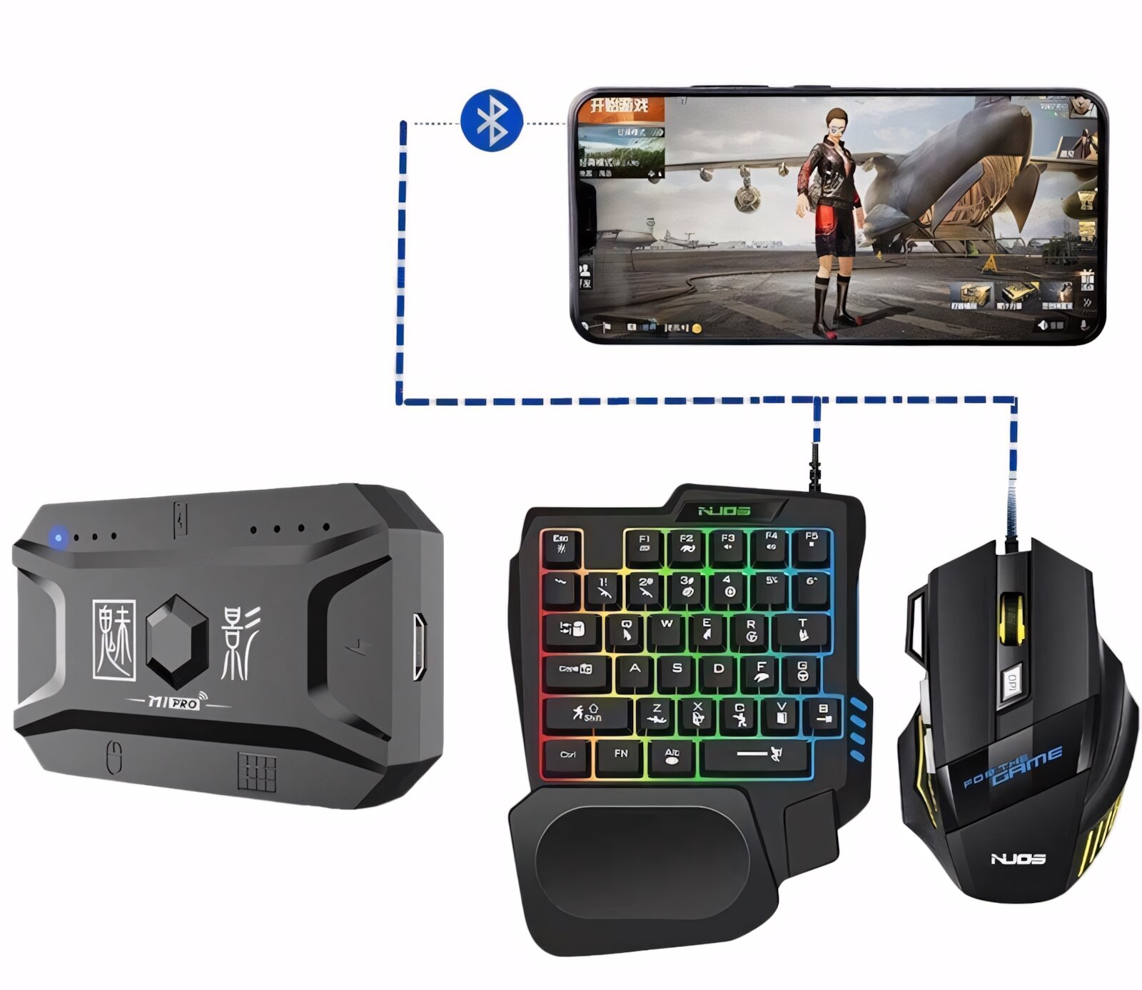 Игровой комплект: эргономичная клавиатура с подсветкой, мышь, адаптер для периферийных устройств, черный/белый