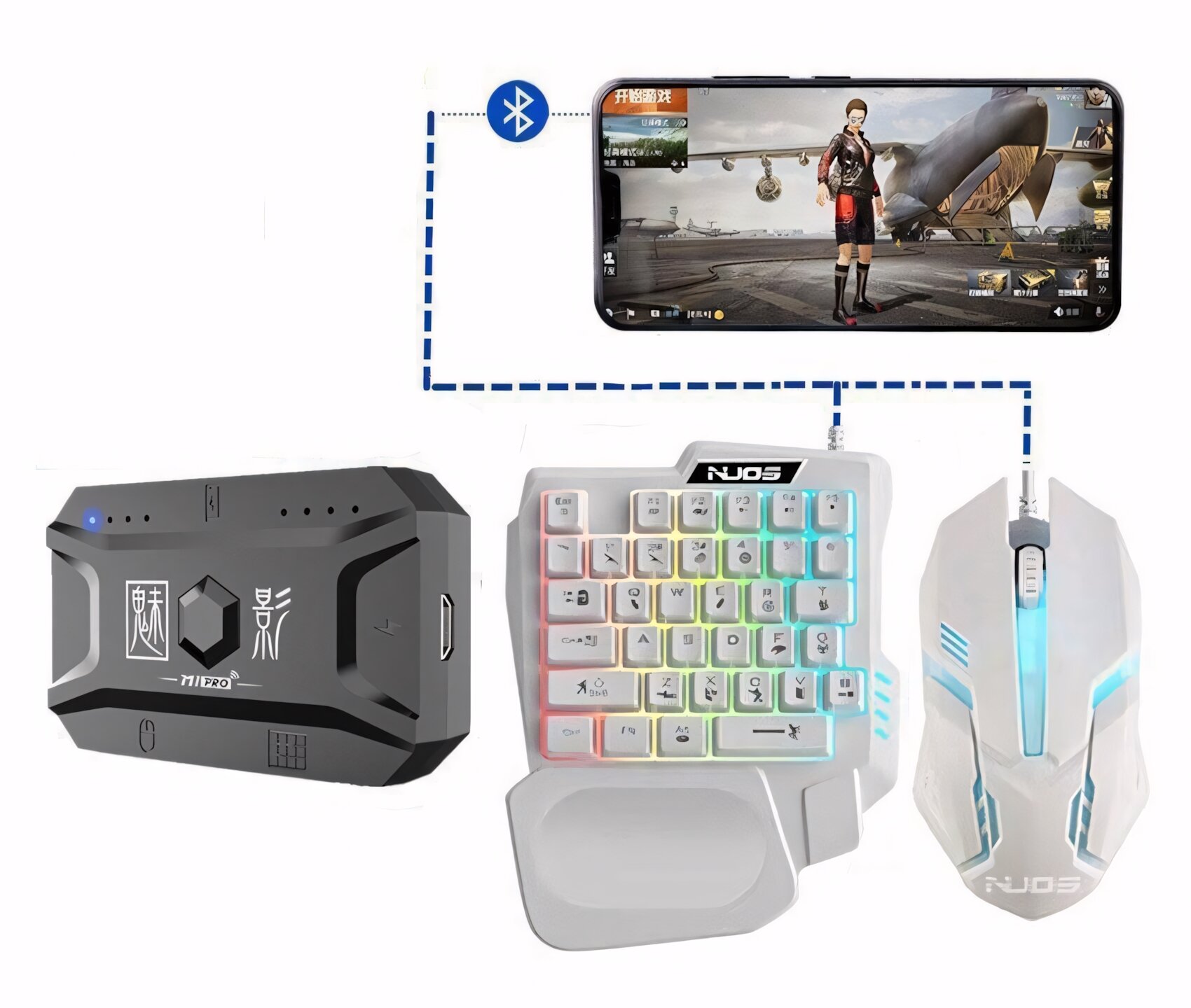 Игровой комплект: эргономичная клавиатура с подсветкой, мышь, адаптер для периферийных устройств, черный/белый