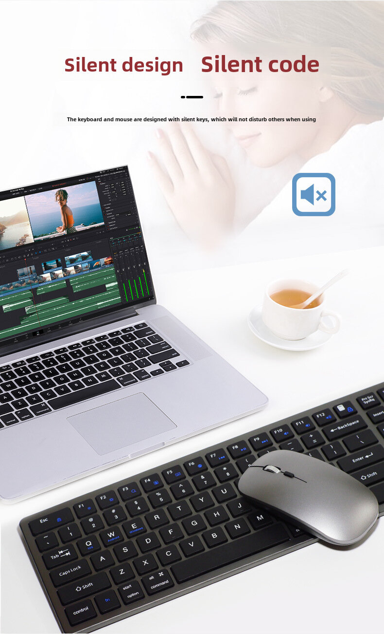 Комплект клавиатура и мышь, для ноутбука, беспроводная, Bluetooth, офисная, трехрежимная, перезаряжаемая