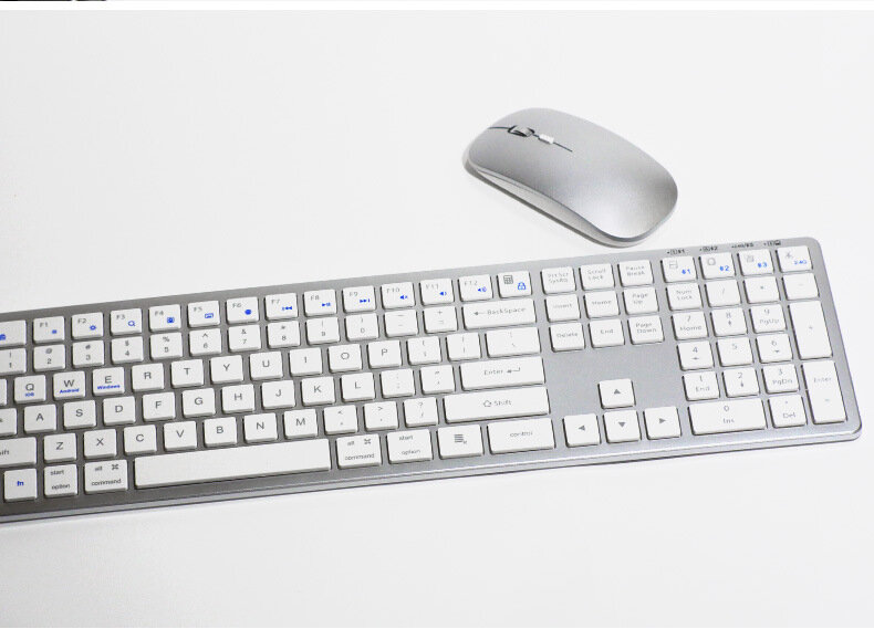Комплект клавиатура и мышь, для ноутбука, офисный, перезаряжаемый, трехрежимный, серебристый