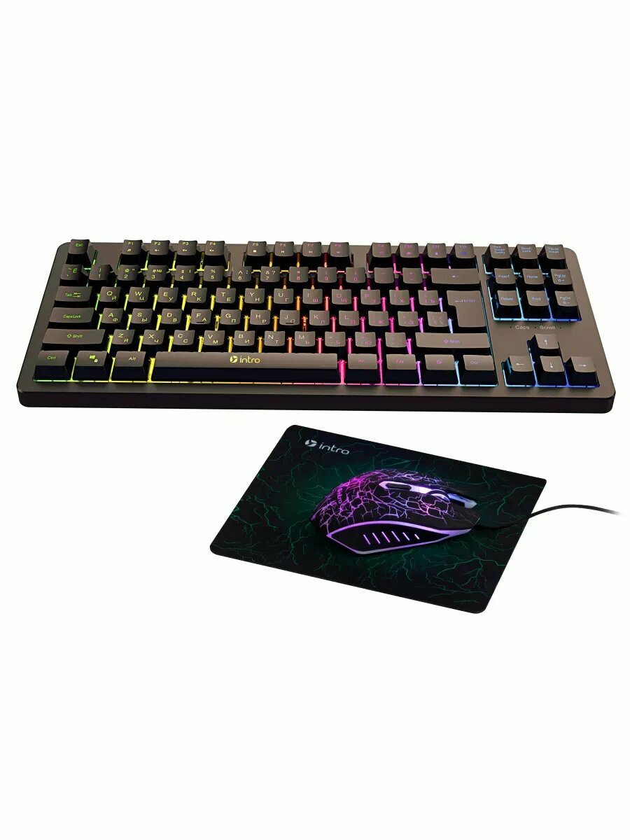 Купить Комплект клавиатура игровая проводная мембранная + игровая мышь проводная оптическая с подсветкой 3600 dpi + коврик Intro DX750