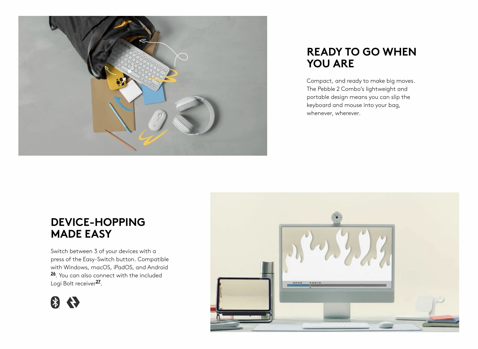 Комплект мышь + клавиатура беспроводная Pebble 2 Combo, Английская раскладка, белый интересное: