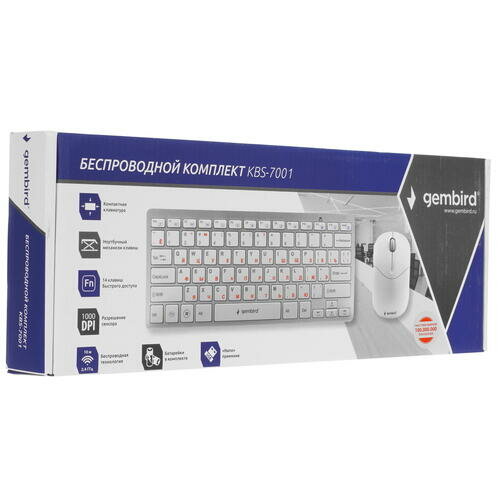 Купить Клавиатура+мышь Gembird KBS-7001-RU Wireless, ноутбучн. механизм клавиш 2.4ГГц/10м, мини-приемник- USB}
