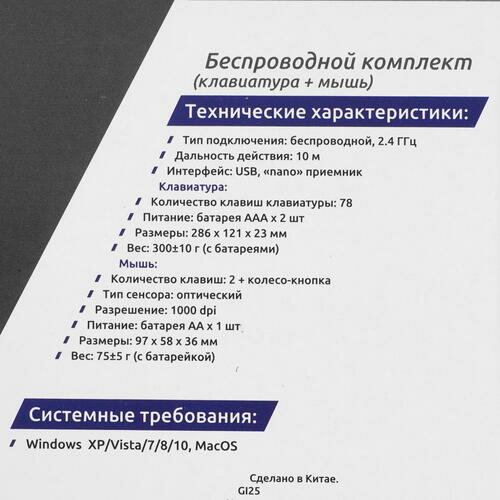 Клавиатура+мышь Gembird KBS-7001-RU Wireless, ноутбучн. механизм клавиш 2.4ГГц/10м, мини-приемник- USB} интересное: