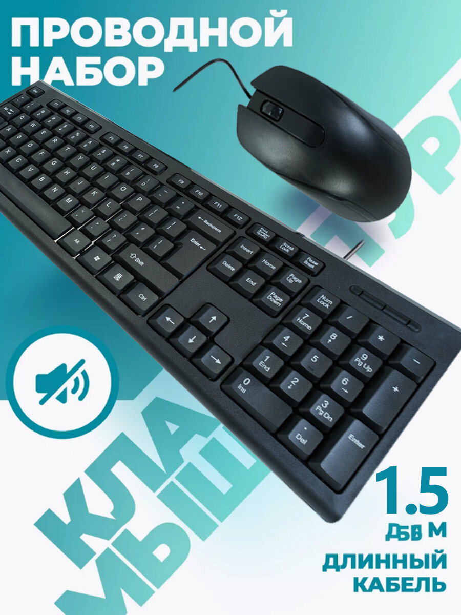 Комплект Клавиатура для компьютера с мышкой мультимедийный,1000 DPI, черный интересное: