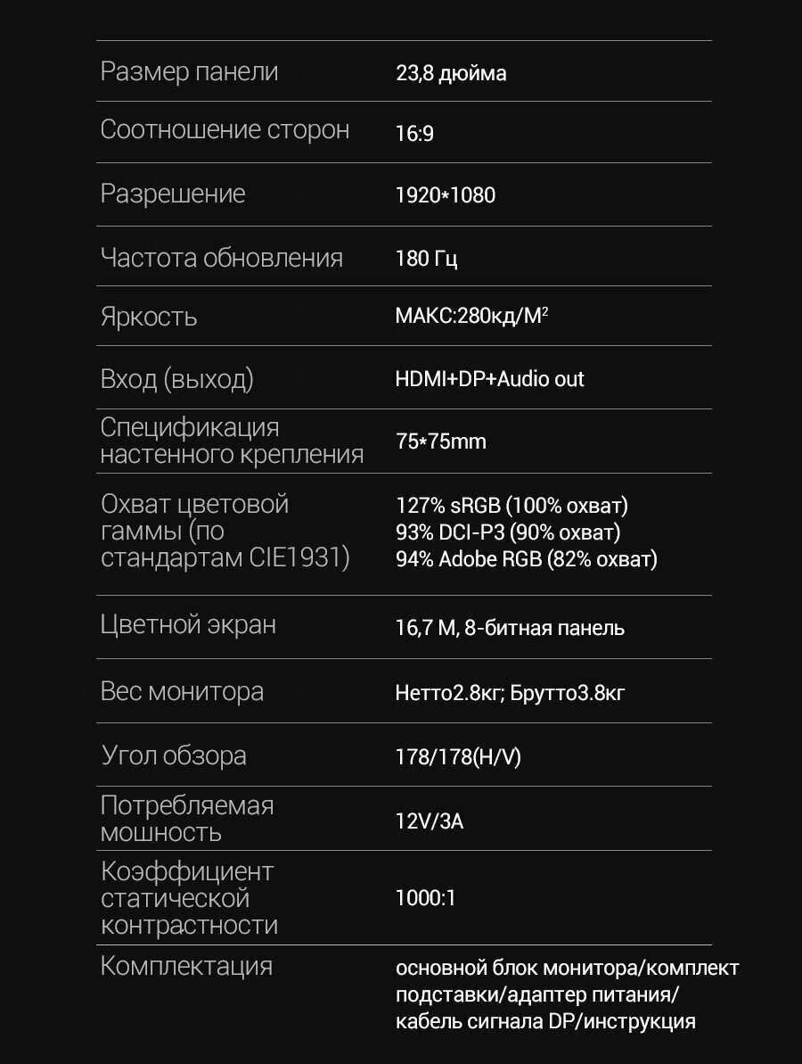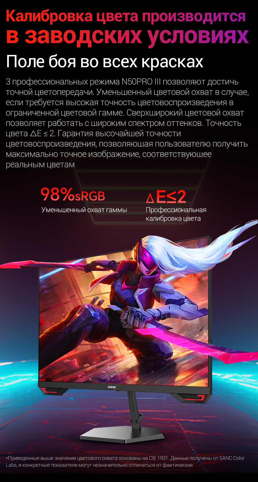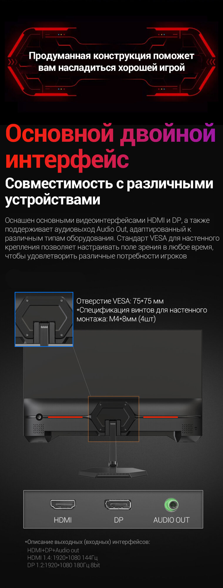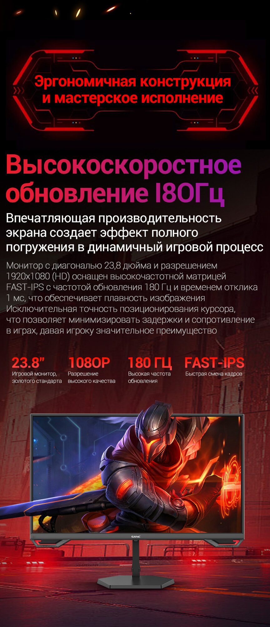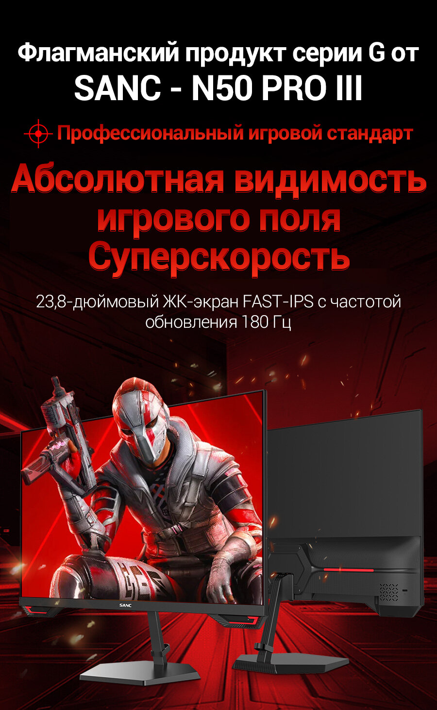 Монитор SANC N50PRO III(G3), IPS, 23.8 дюйма, 1920x1080, 180Гц, HDMI+DP+Audio out, Игровой интересное: