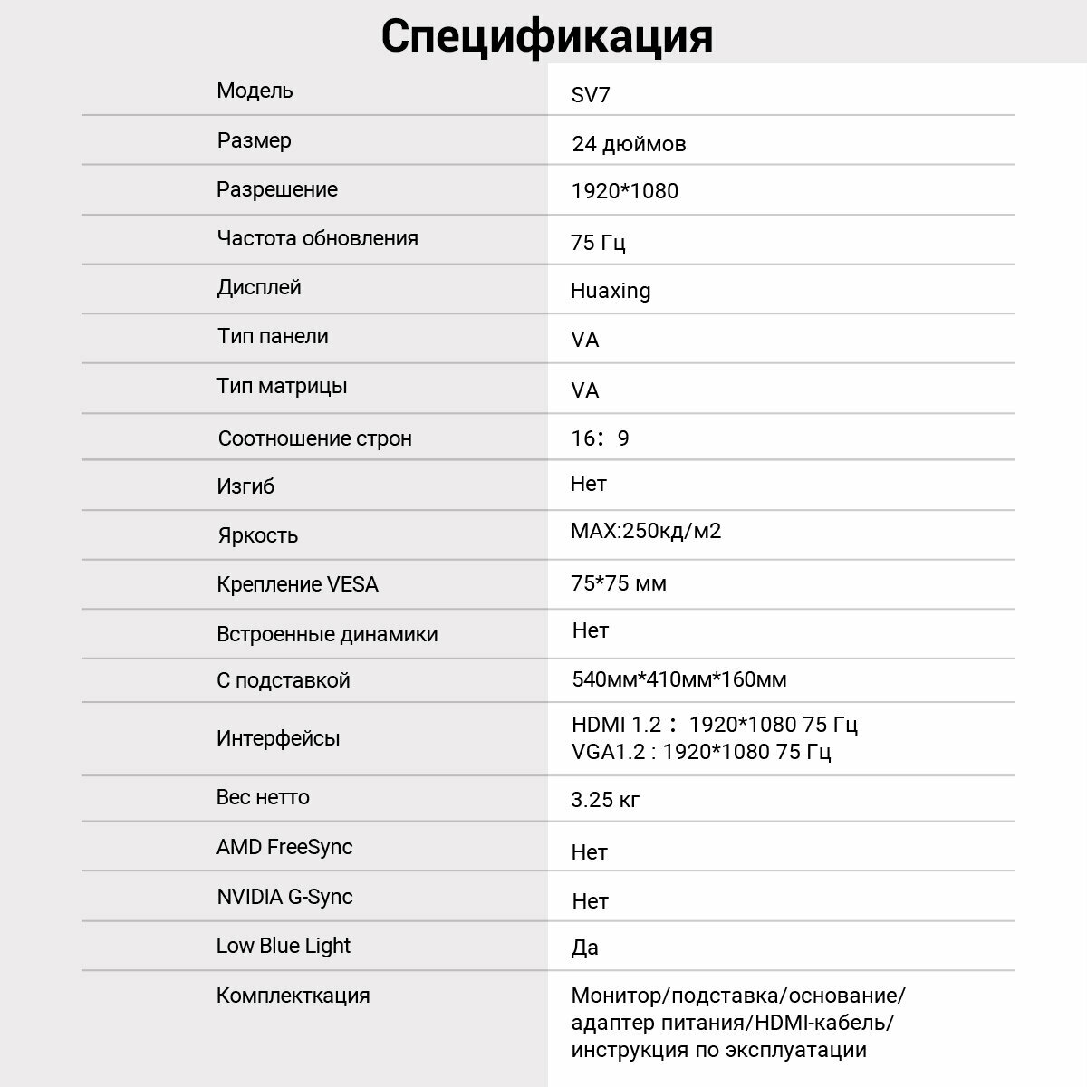 Монитор ECOVINKA "SV9", 22", диагональ, 1920х1080, VA-матрица