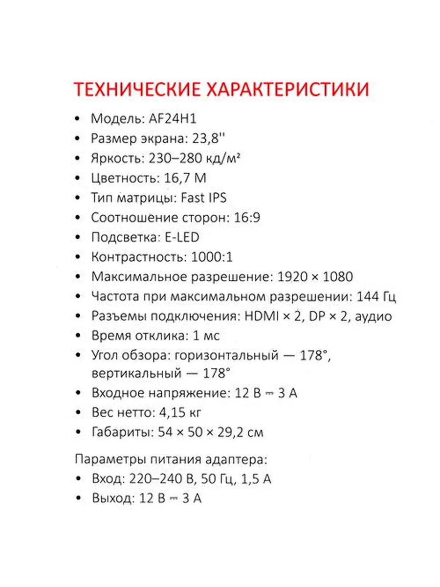 Монитор ARDOR GAMING PORTAL 23.8" AF24H1 (144 Гц, IPS, LED)белый интересное: