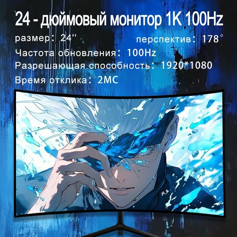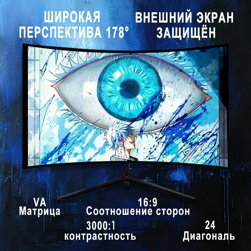 24" Монитор для пк игровой изогнутый, черный матовый,100 герц интересное: