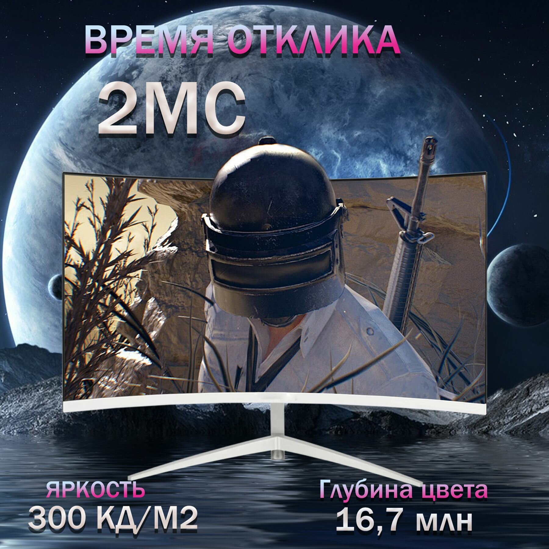 24" Монитор, разрешение 1920*1080, частота обновления 100 Гц, Безрамочный изогнутый экран, Белый