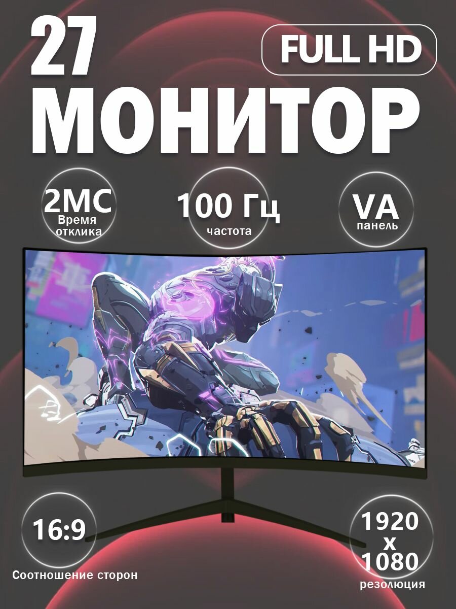 Купить 27-дюймовый монитор 100 Гц, Full HD, VA, черный матовый, изогнутый экран, Игровые мониторы для ПК