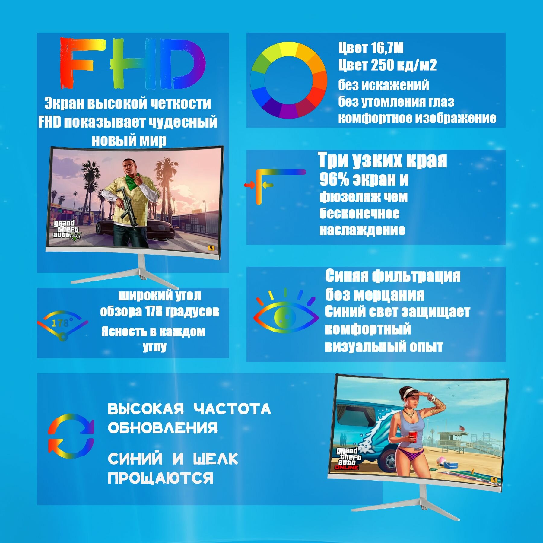 24 Монитор , Игровые мониторы для ПК,75 Гц, Изогнутые сита, разрешение 1920*1080,