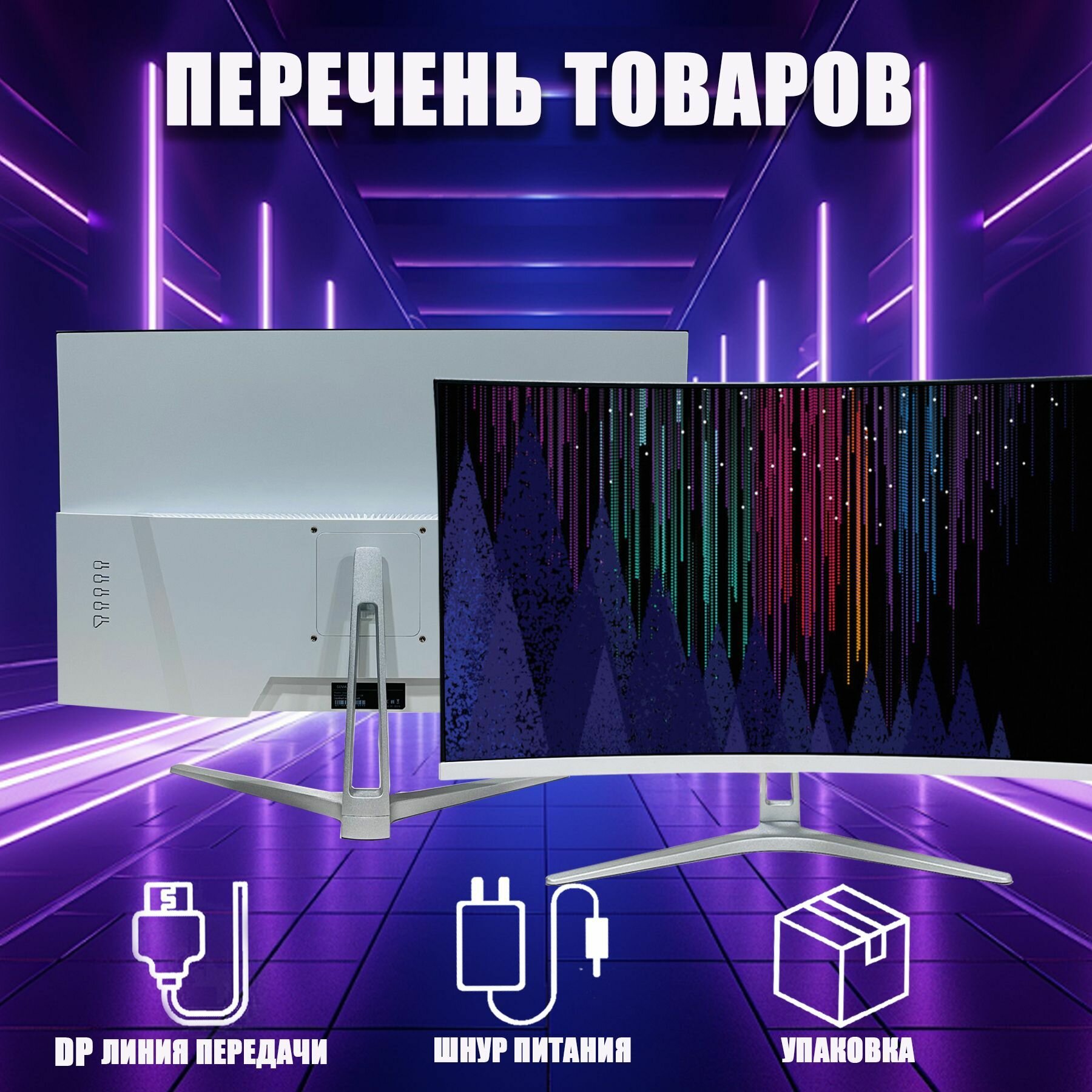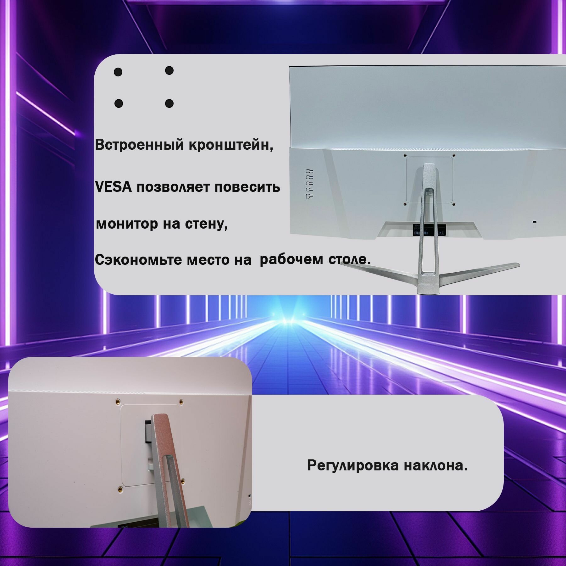 24" Монитор, разрешение 1920*1080, частота обновления 100 Гц, Безрамочный изогнутый экран, Белый