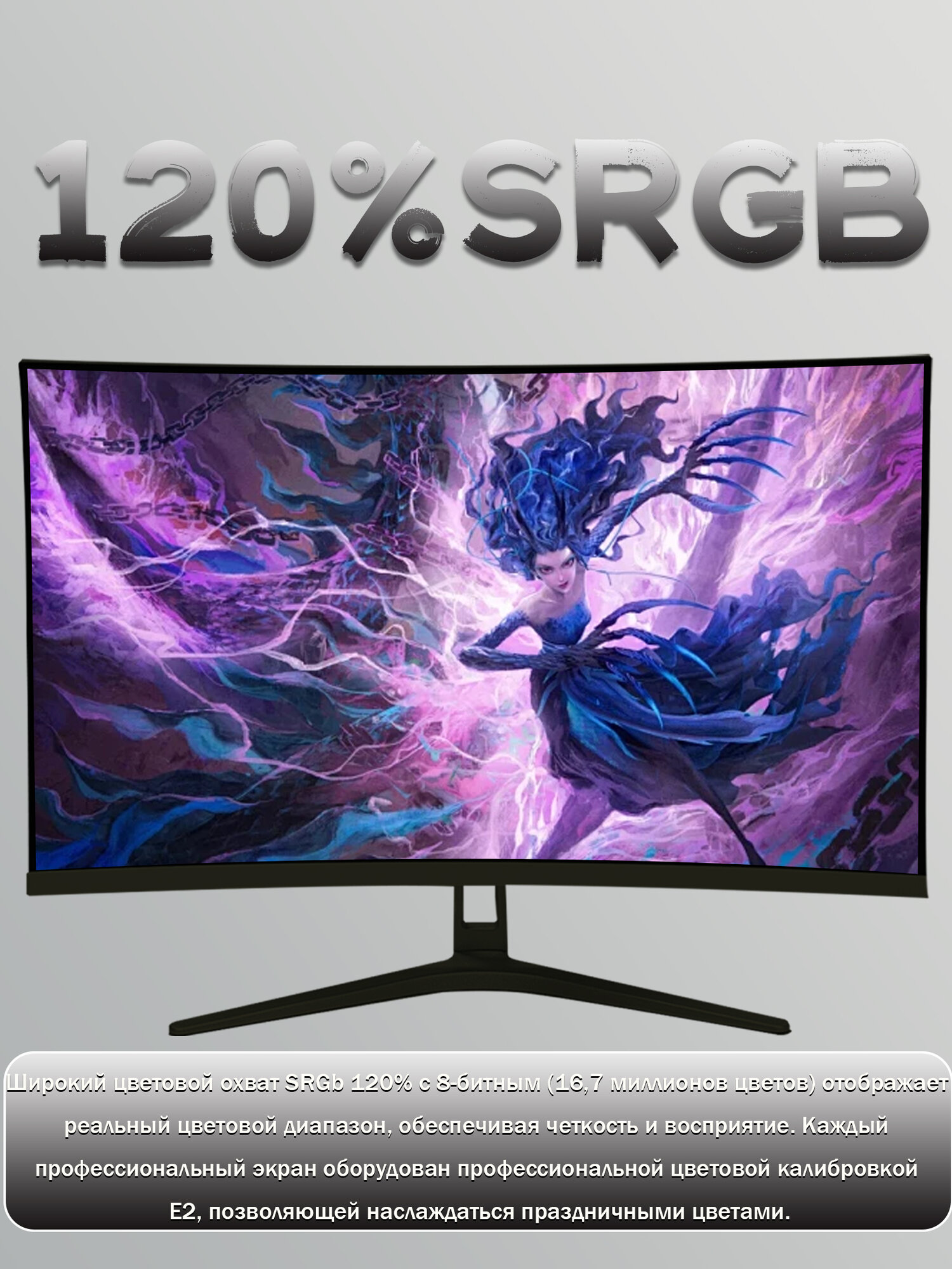 24-дюймовый Монитор без рамок, изогнутый дисплей, 1K100 Гц, чёрный