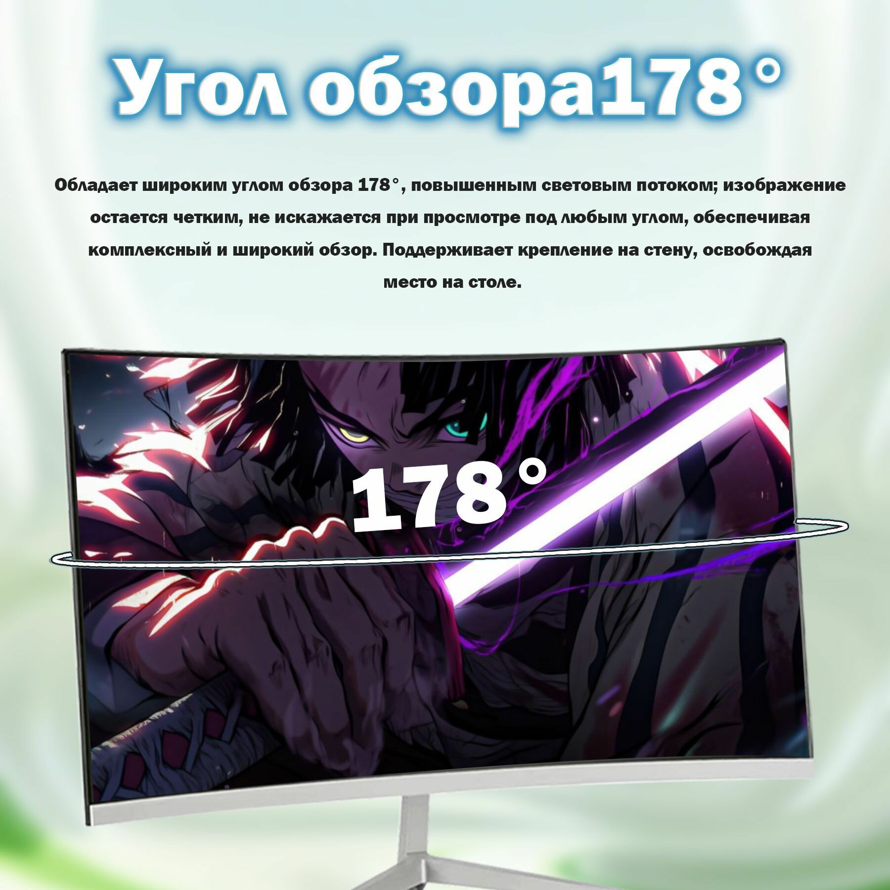 24-дюймовый Монитор без рамок, изогнутый дисплей, 1K100 Гц, чёрный