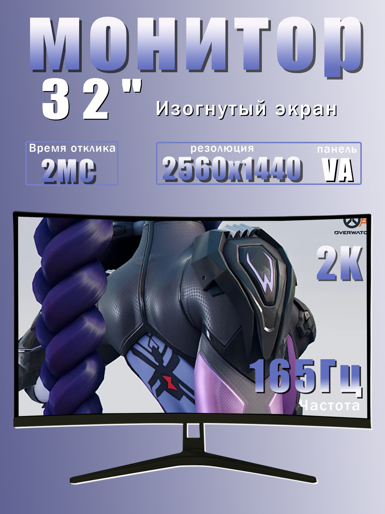 32-дюймовый изогнутый монитор, 2K Full HD, безрамочный дисплей, частота обновления 165 Гц