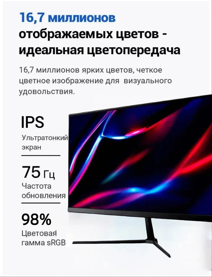 Игровой монитор YPAY, 24", IPS, 1920x1080, 75Гц, встроенная акустика, чёрный интересное: