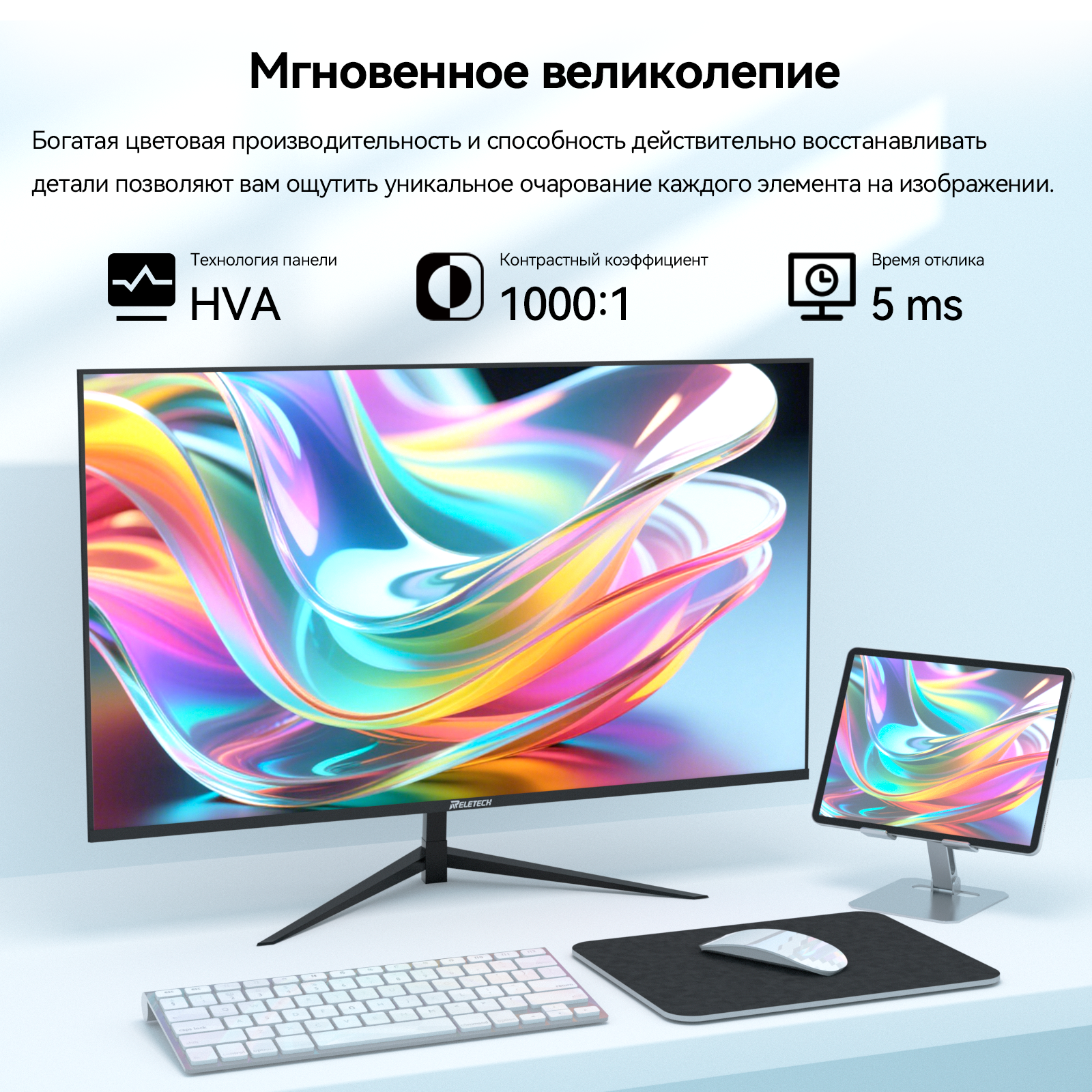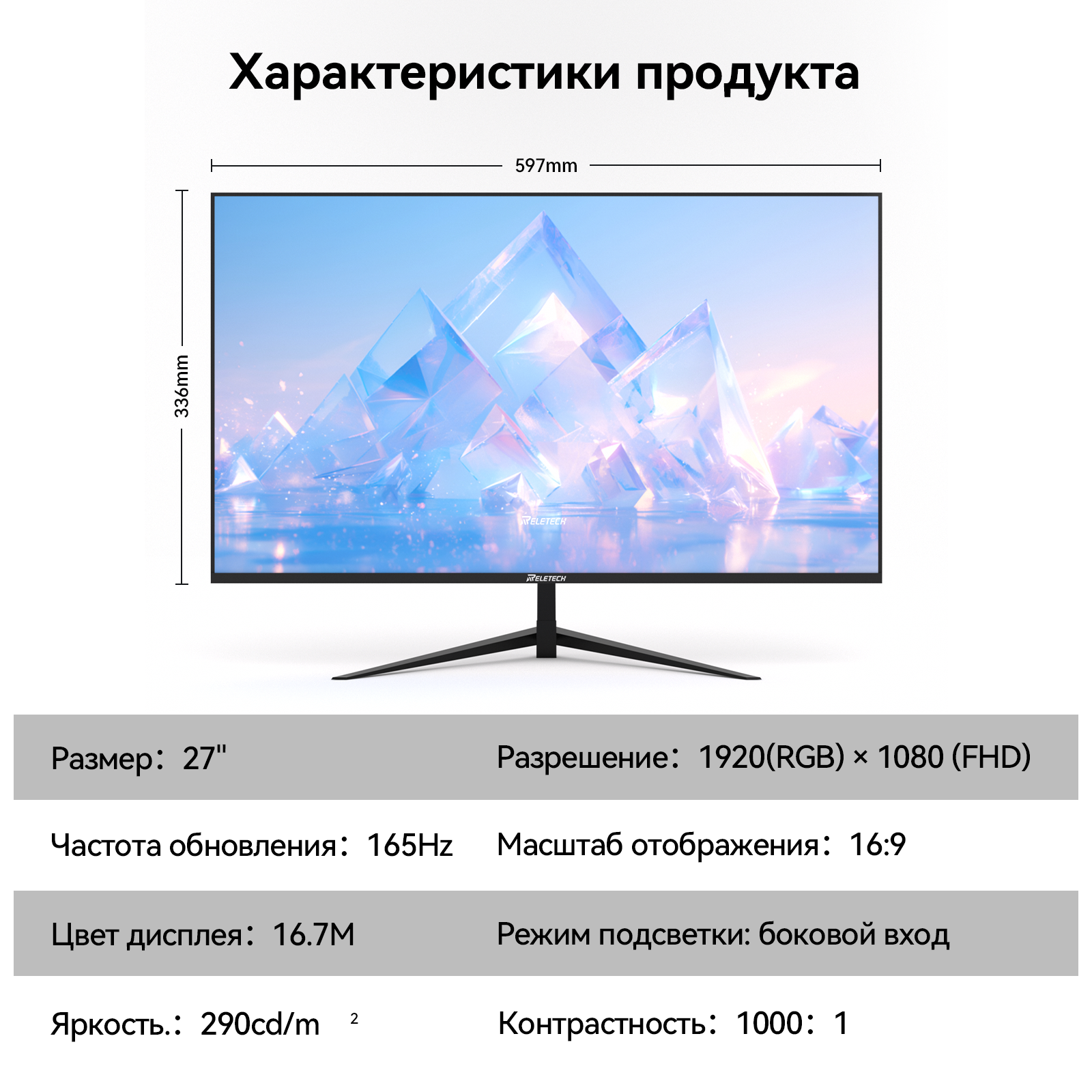 Монитор Reletech G27X, 27", игровой, плоский, 1920x1080 FHD, 165 Гц, HDMI+DP, 72% sRGB, защита глаз, Адаптивная синхронизация интересное: