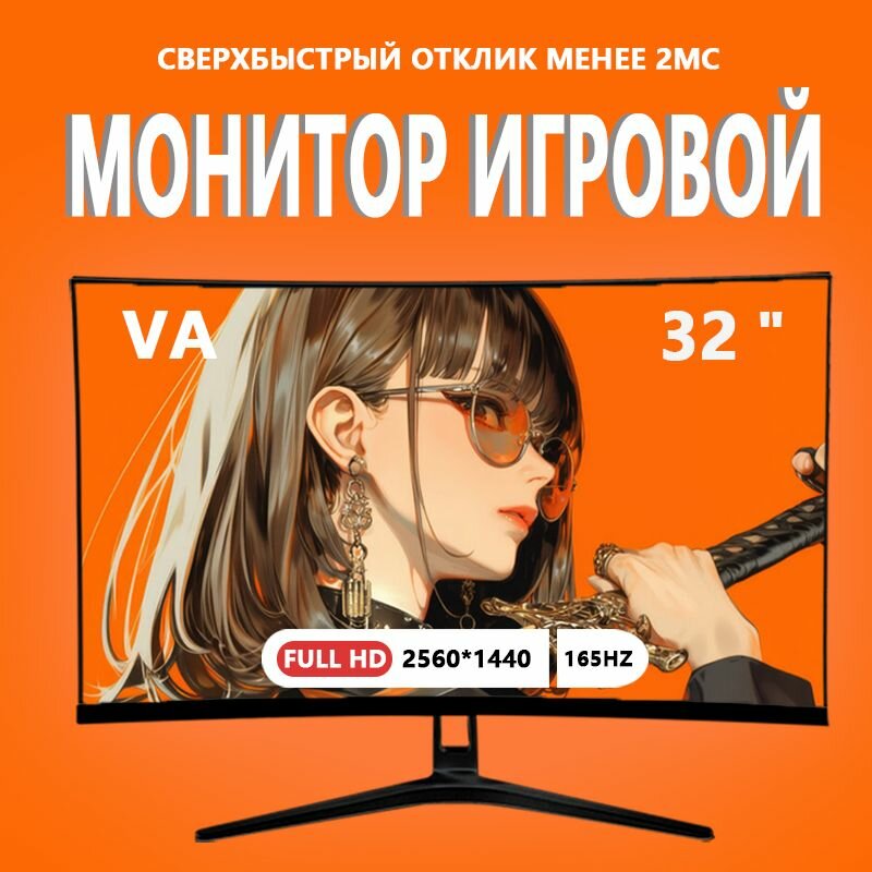 32-дюймовый Монитор, изогнутый дисплей, 2K 2560x1440 165 Гц, Черный
