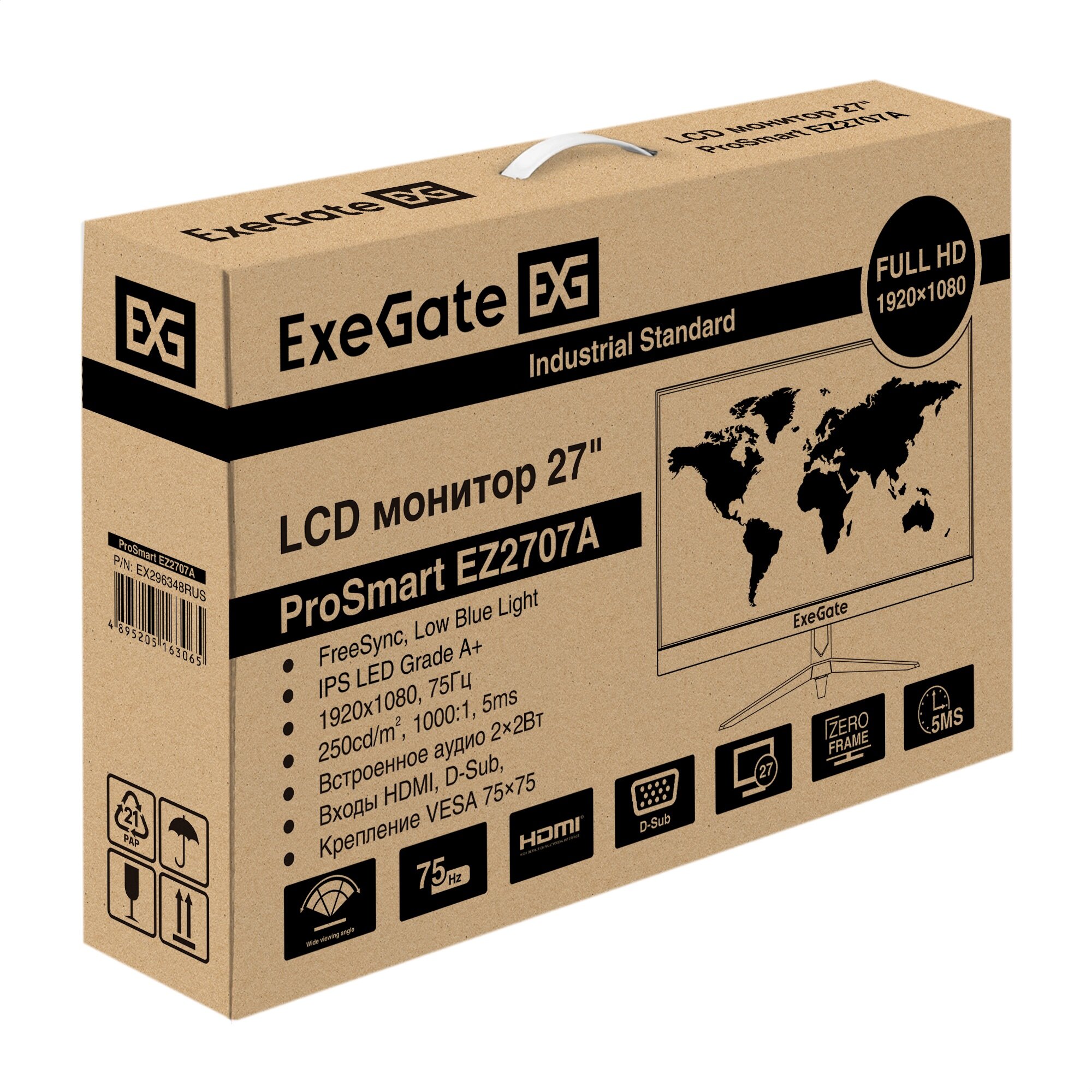 Купить Монитор безрамочный с аудио 27" ExeGate ProSmart EZ2707A (IPS LED Grade A+, FHD, 1920x1080@75Гц, черный)
