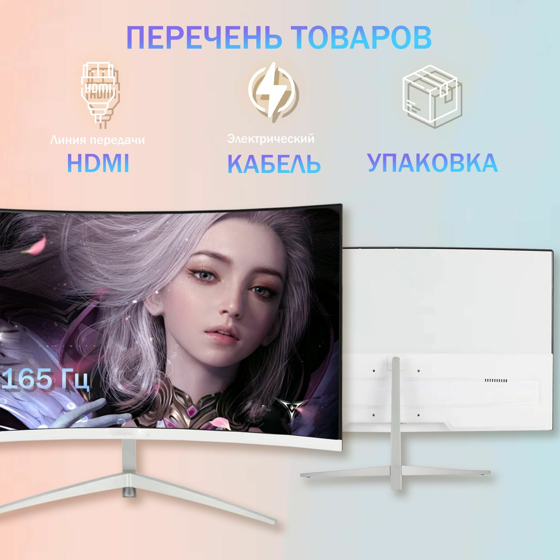 Сохранить27" Игровые мониторы, разрешение 2560*1440, 2K, частота обновления 165Гц, Безрамочный изогнутый экран, интересное: