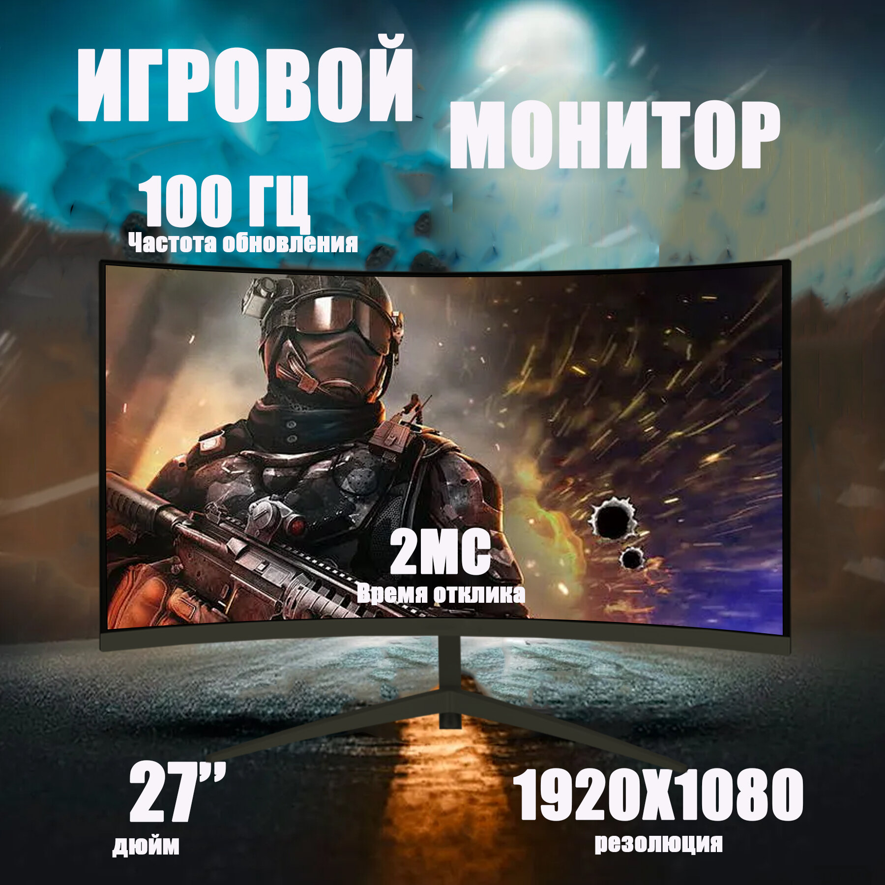 Игровой монитор белый 100 Гц ,1K, изогнутый экран