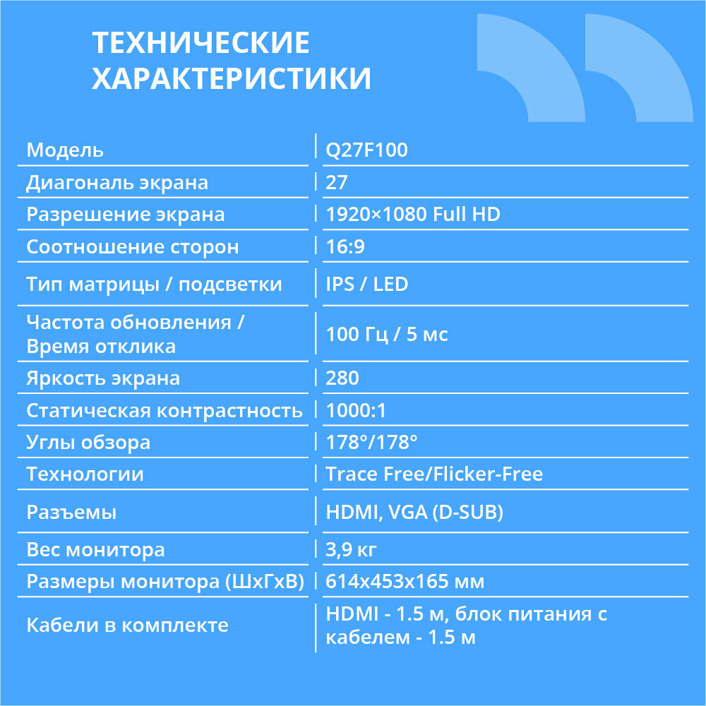 Cbr Безрамочный монитор 27' IPS 1920x1080 Full HD все провода в комплекте LCD-Q27F100-OPC интересное: