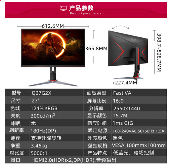 Игровой изогнутый монитор AOC Q27G2X 27", 2560x1440, Fast VA, черный интересное: