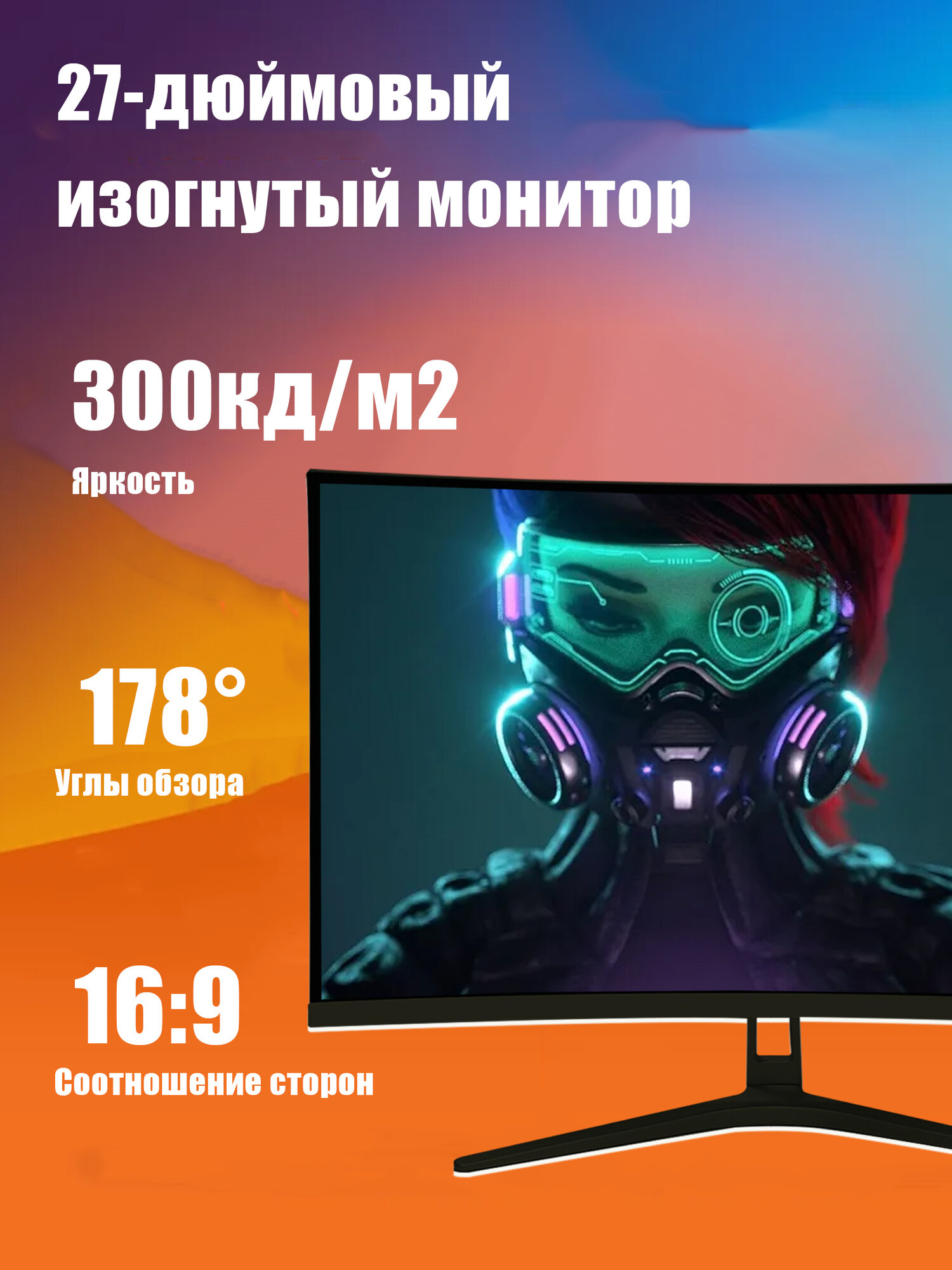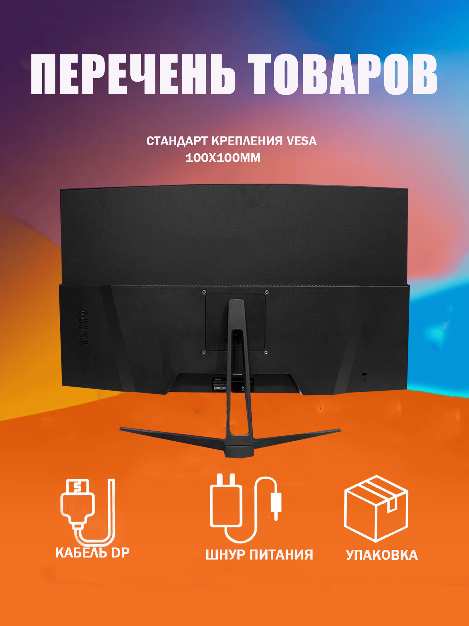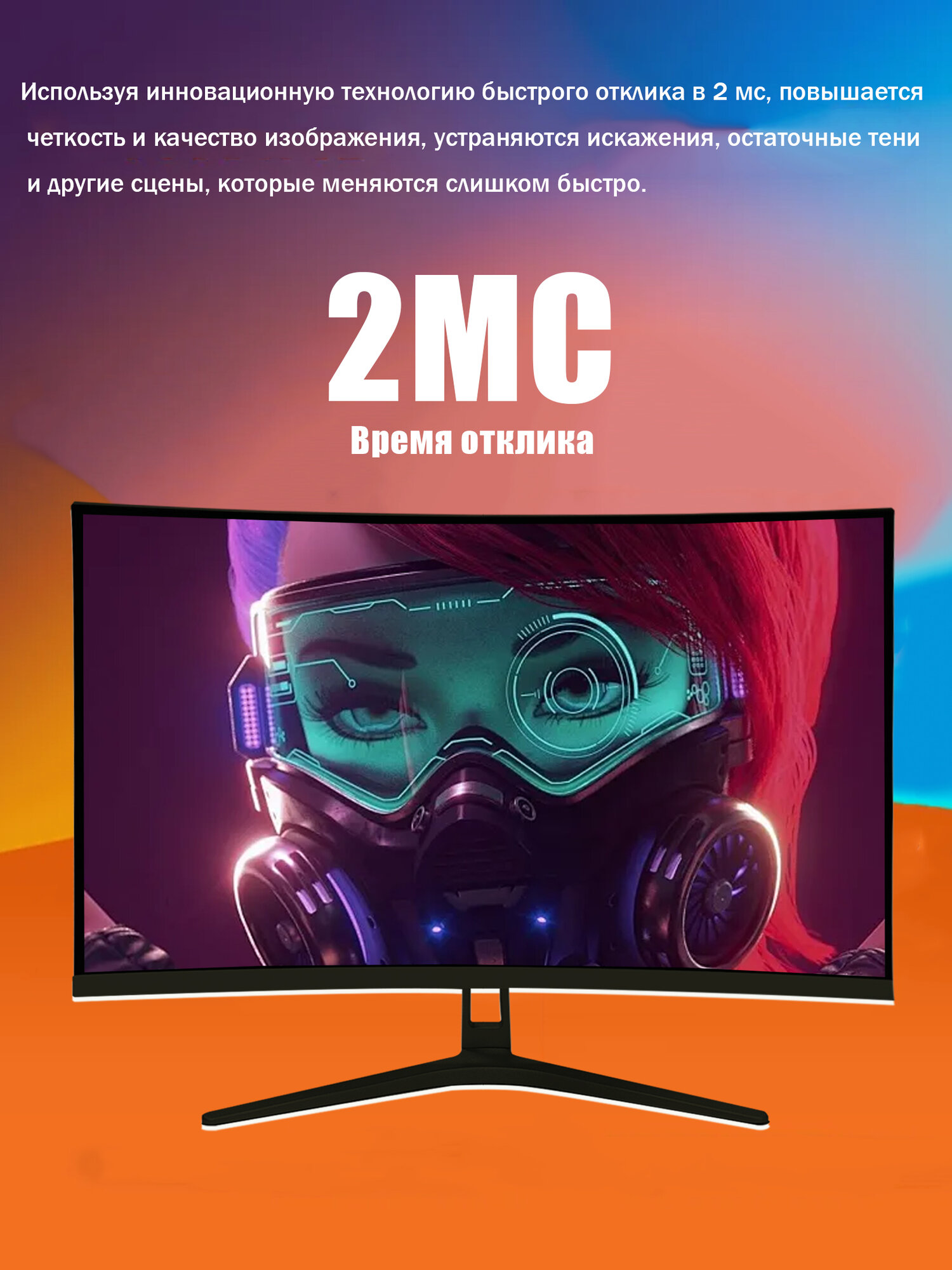 Изогнутый игровой монитор с диагональю 24 дюйма,1K 100 Гц, Черный матовый