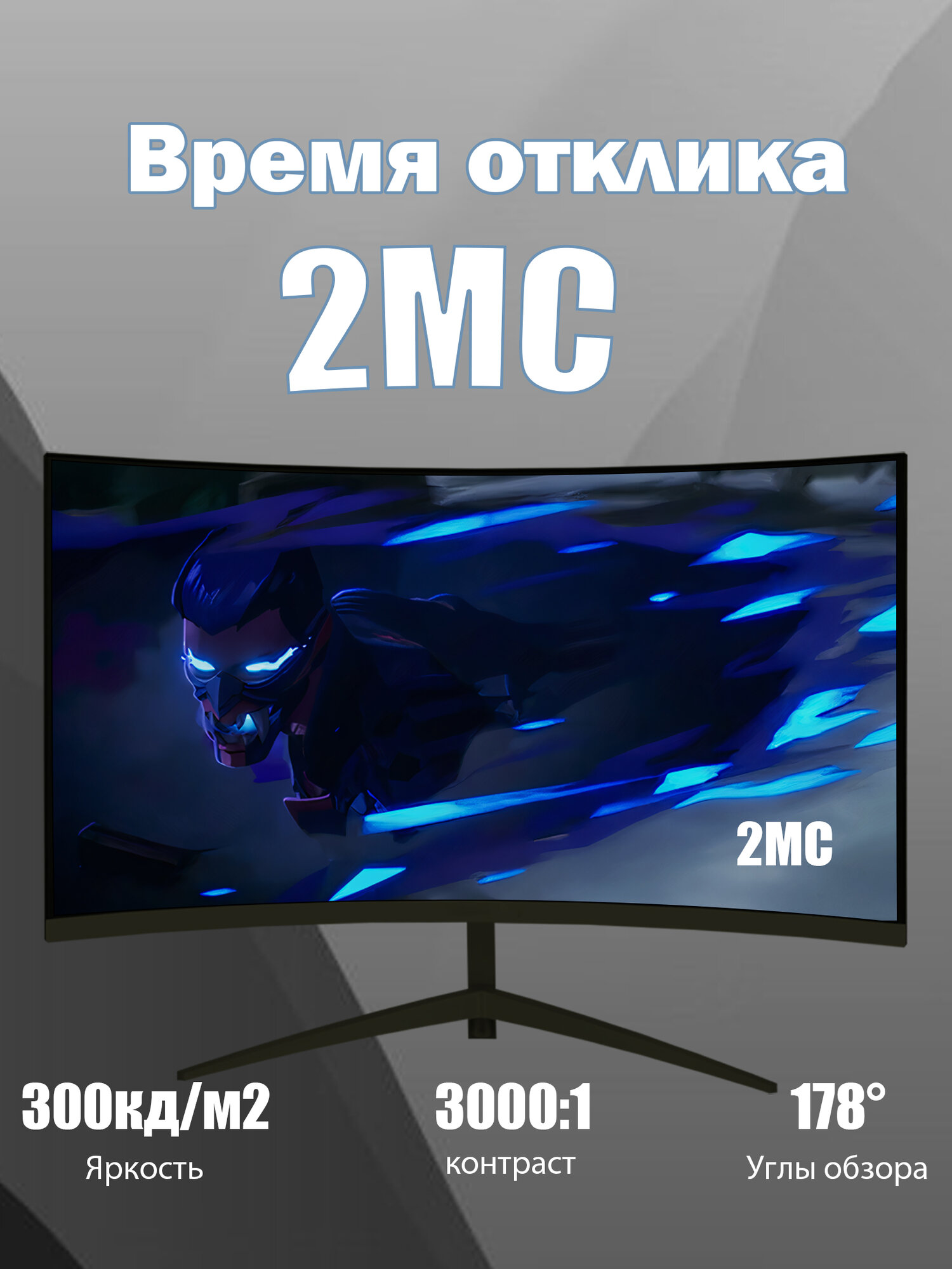 Купить Изогнутый игровой монитор с диагональю 24 дюйма,1K 100 Гц, Черный матовый