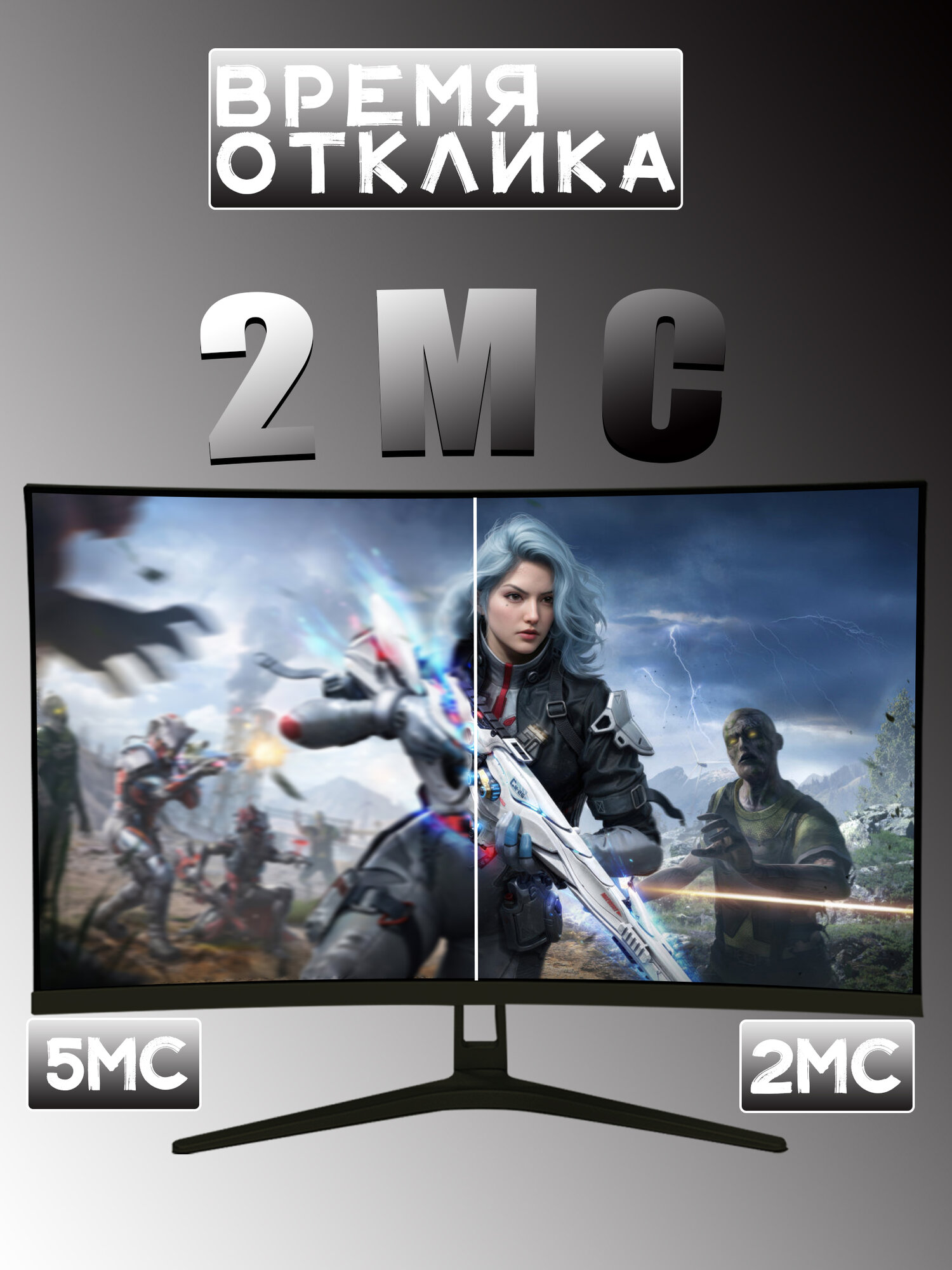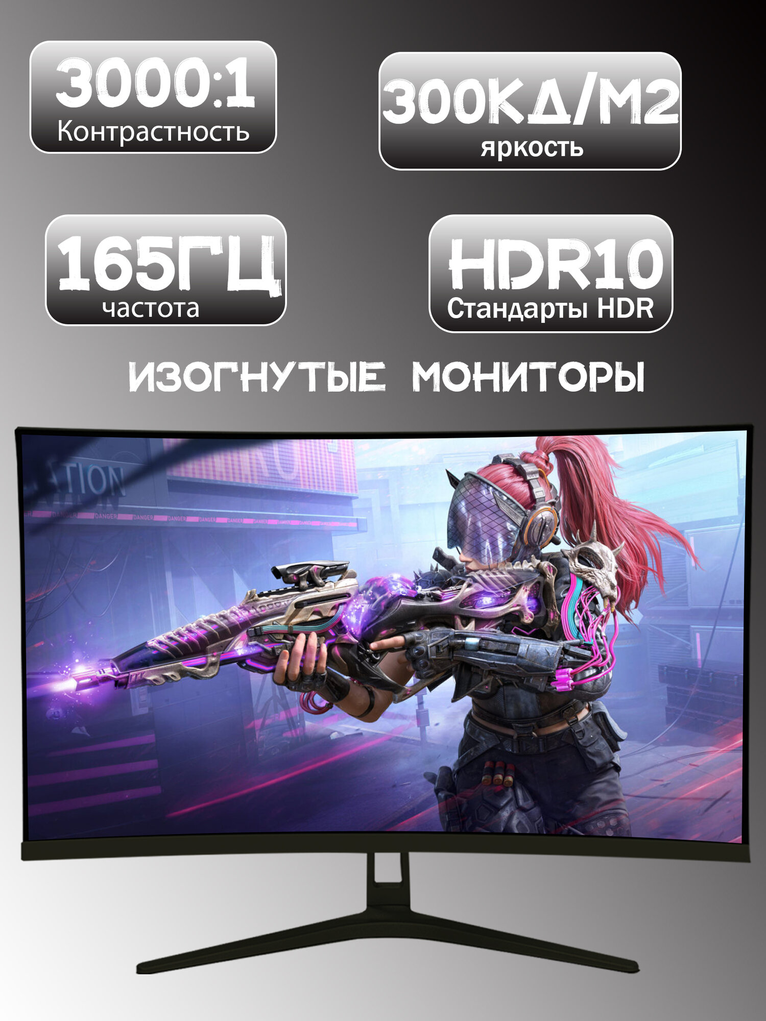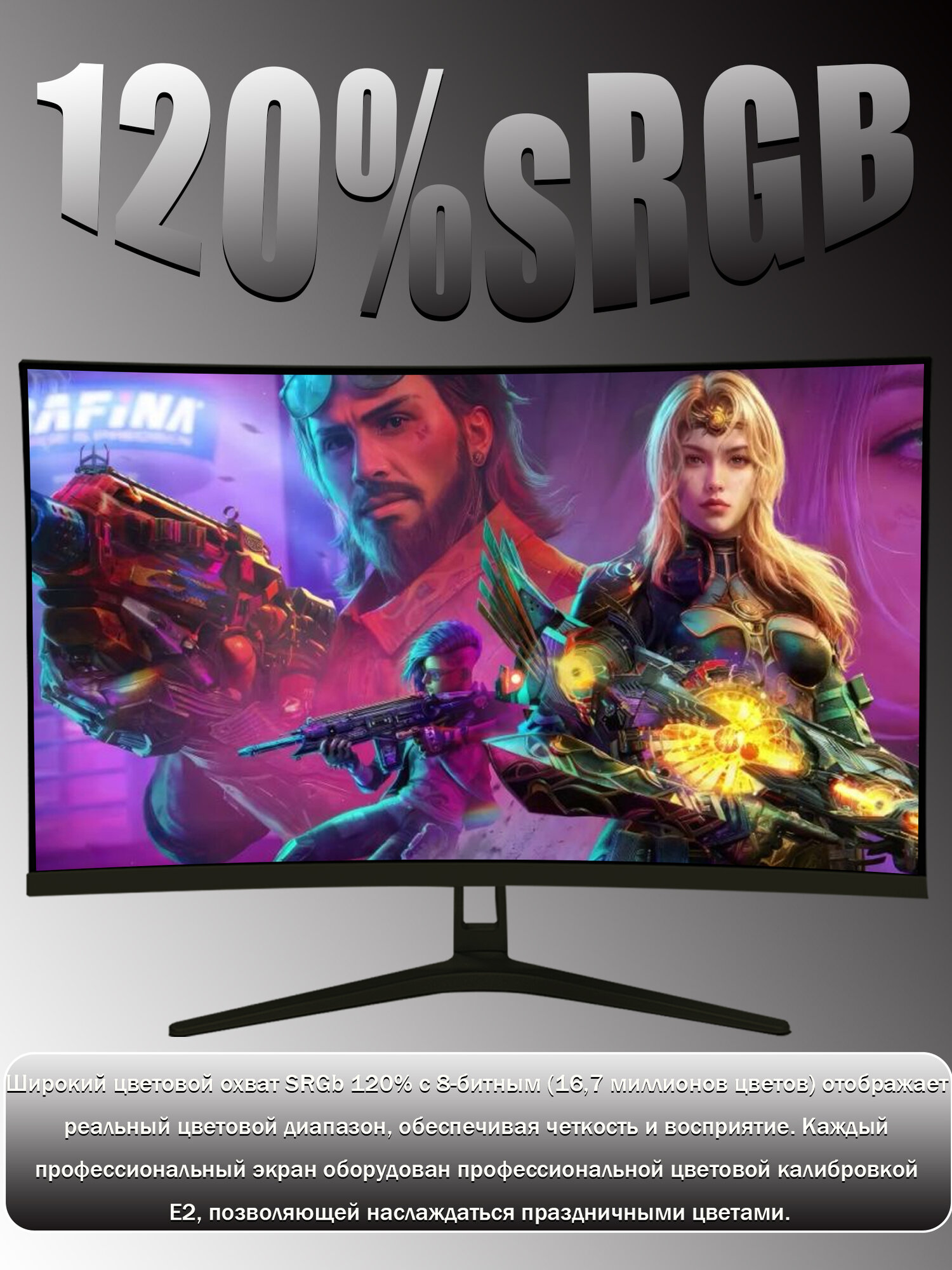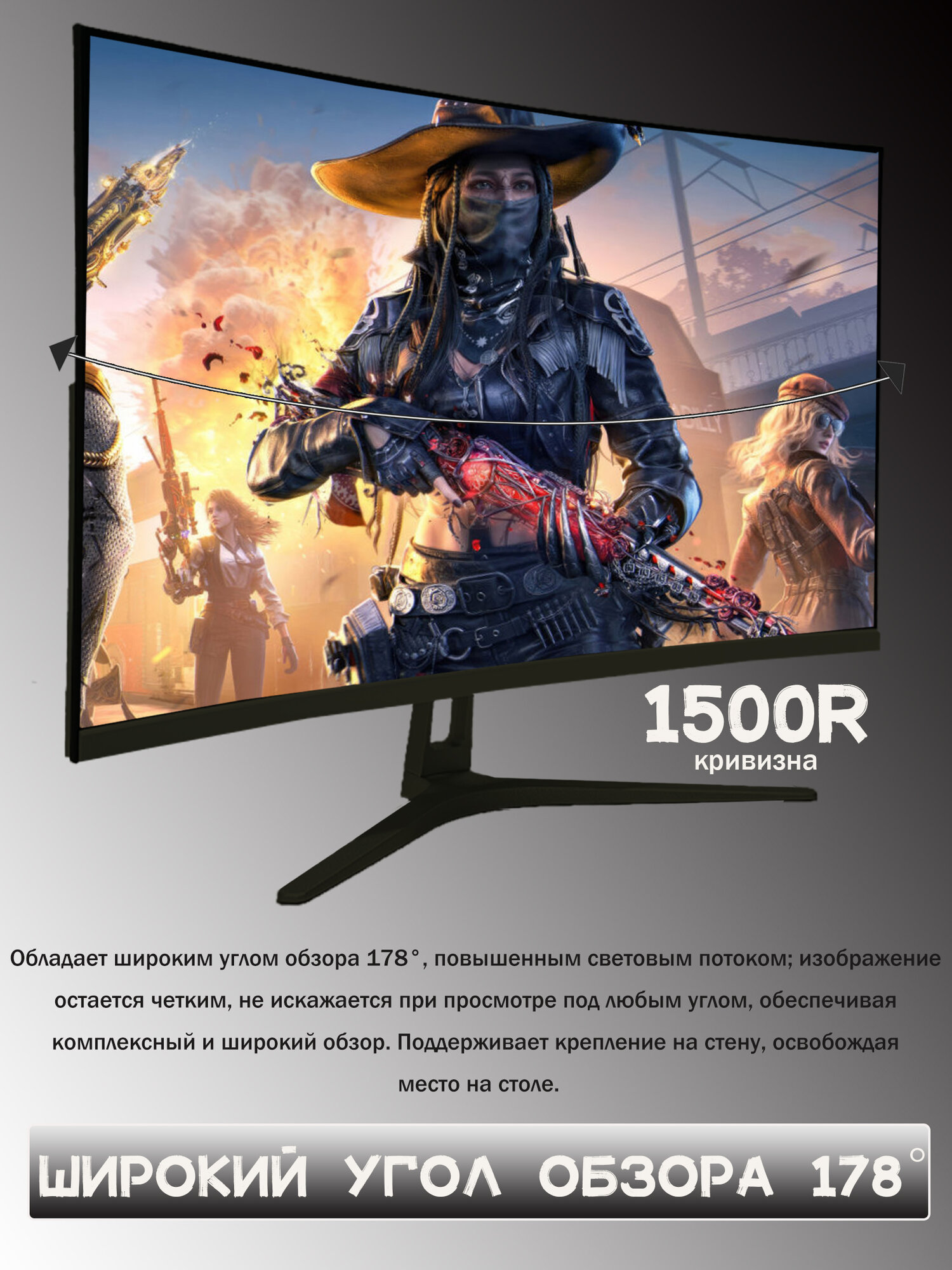 Изогнутый игровой монитор с диагональю 24 дюйма,1K 100 Гц, Черный матовый