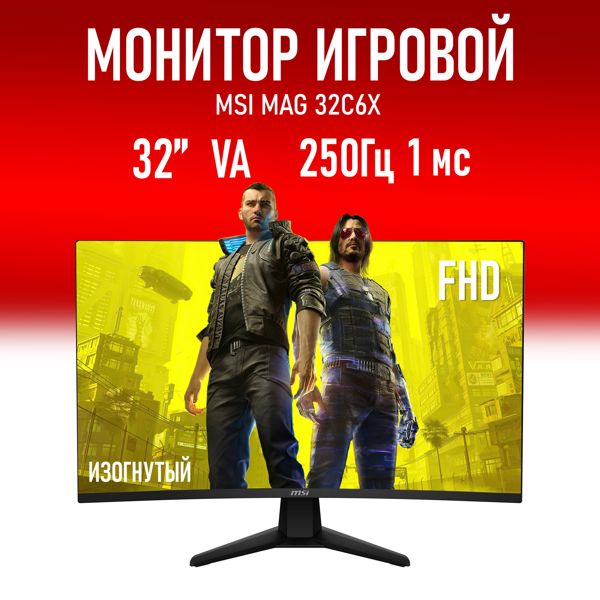 Купить Монитор 31.5" MSI MAG 32C6X, 1920x1080, 250 Гц, VA, LED, 250 Кд/м, 1 мс