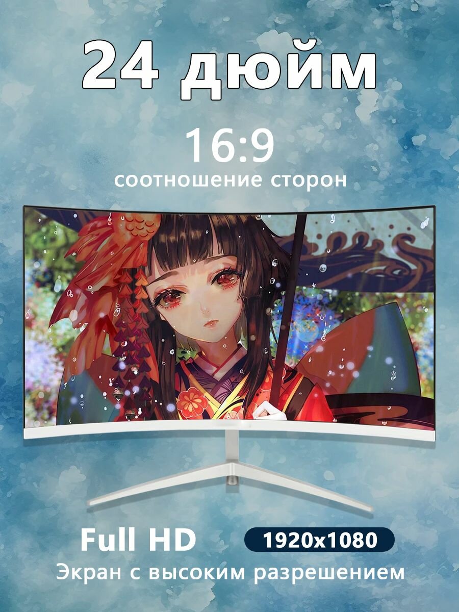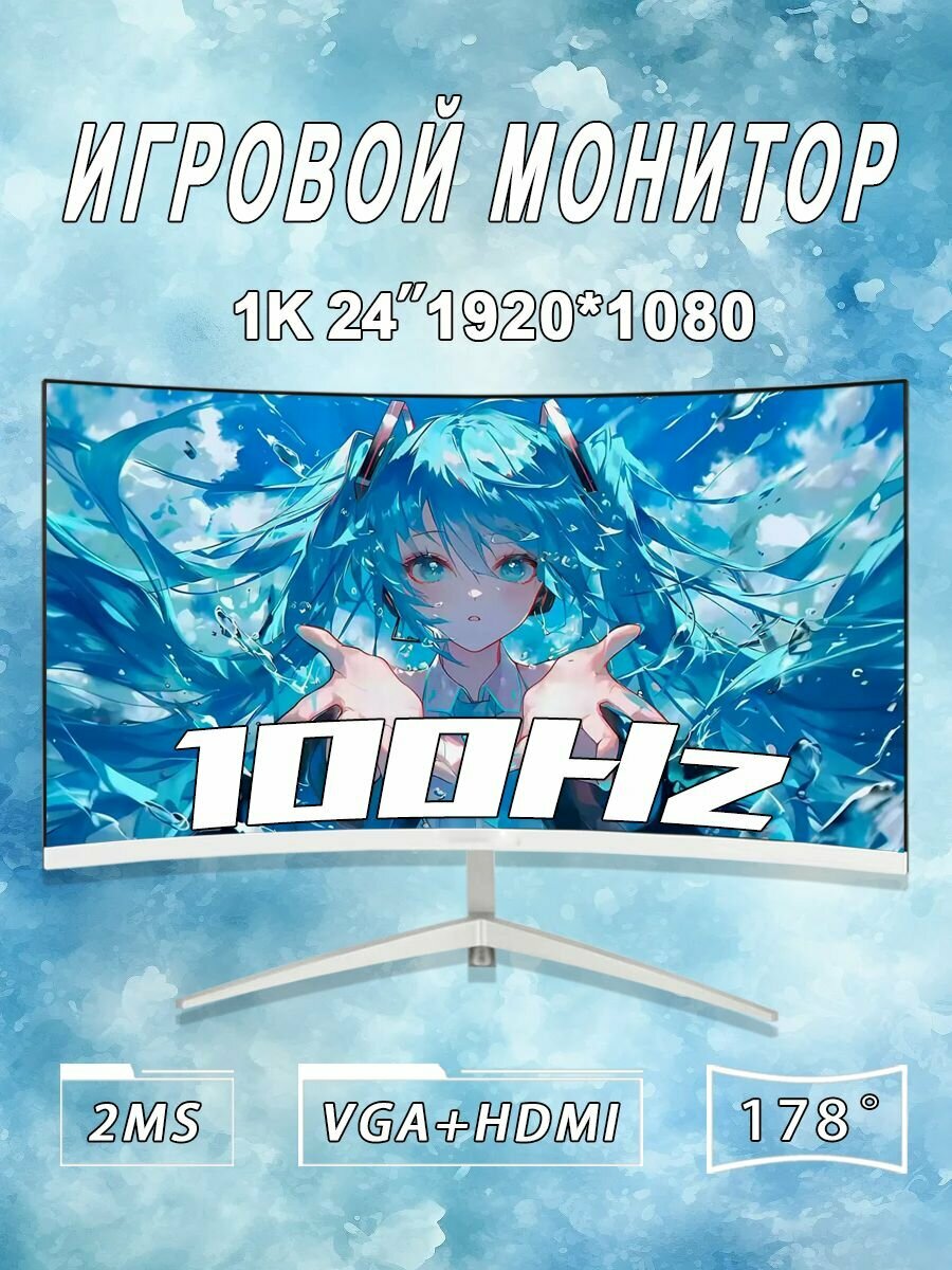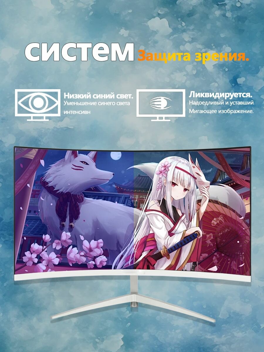 24 - дюймовый игровой дисплей, кривой экран, 100 герц, белый, предотвращающий синий свет интересное:
